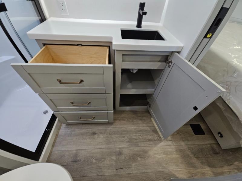 The Brinkley mid-profile Model Z fifth wheels bring you clean lines and an upscale look with plenty of style and exciting new features like the industry first brass plumbing connections. These units also feature an automotive grade front cap, plenty of exterior storage, exterior hot and cold showers, and wide stance leveling jacks for easy set up. Residential frameless windows provide a clean look and beautiful views, and ample electrical outlets and 6 USB/USB-C outlets allow all of your electronics and appliances to easily be used and charged.