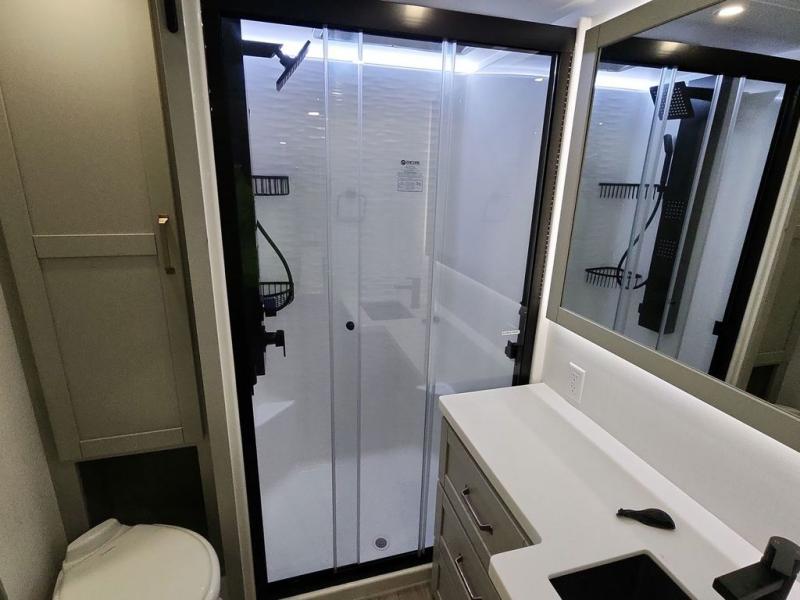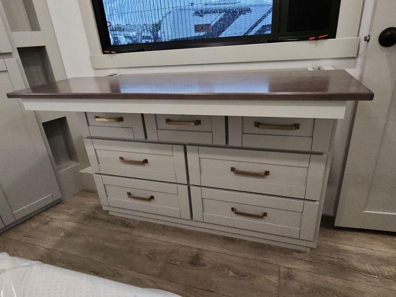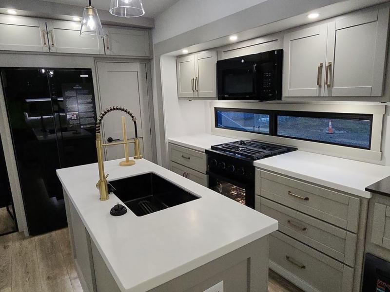The Brinkley mid-profile Model Z fifth wheels bring you clean lines and an upscale look with plenty of style and exciting new features like the industry first brass plumbing connections. These units also feature an automotive grade front cap, plenty of exterior storage, exterior hot and cold showers, and wide stance leveling jacks for easy set up. Residential frameless windows provide a clean look and beautiful views, and ample electrical outlets and 6 USB/USB-C outlets allow all of your electronics and appliances to easily be used and charged.