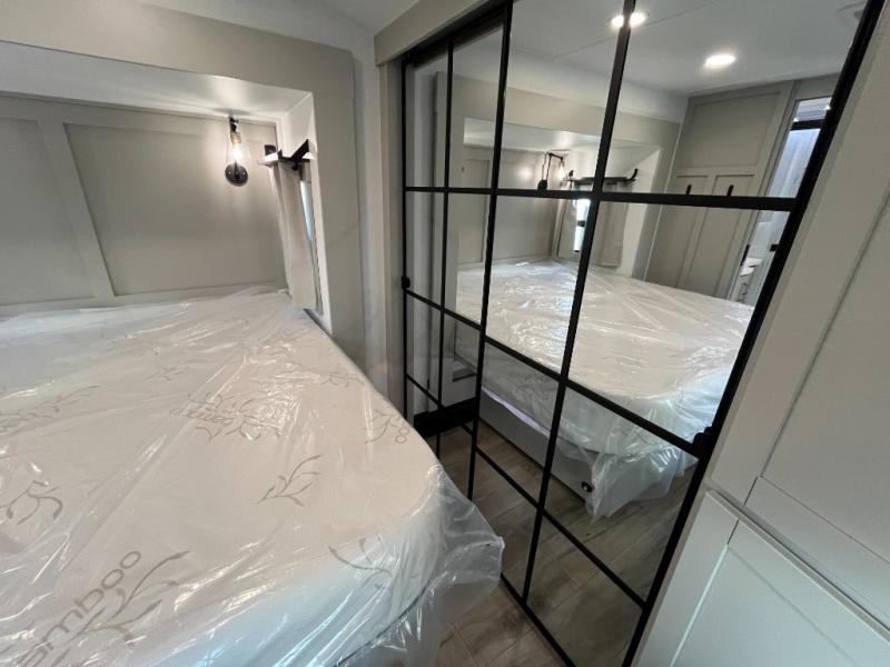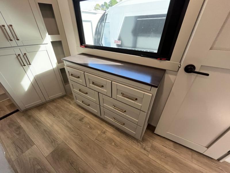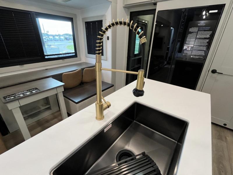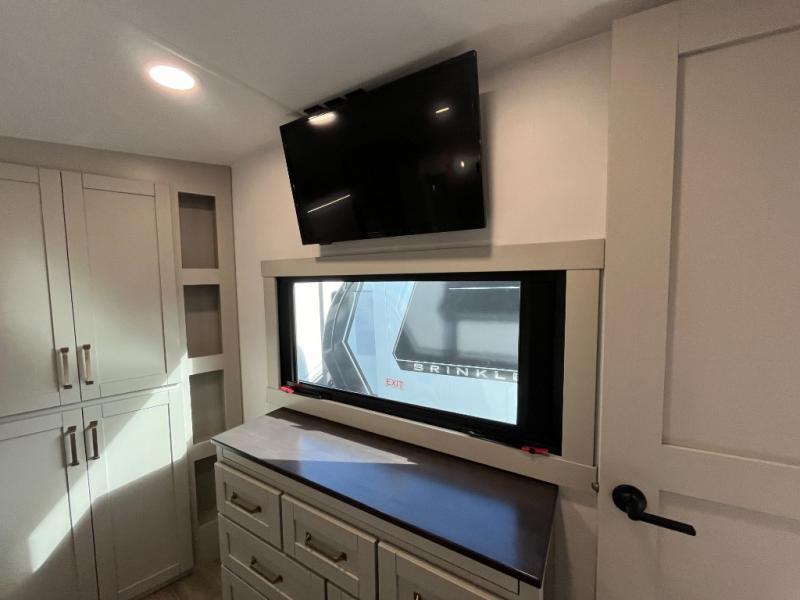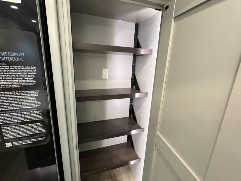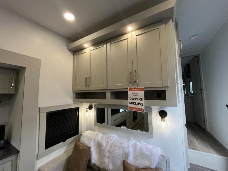 The Brinkley mid-profile Model Z fifth wheels bring you clean lines and an upscale look with plenty of style and exciting new features like the industry first brass plumbing connections. These units also feature an automotive grade front cap, plenty of exterior storage, exterior hot and cold showers, and wide stance leveling jacks for easy set up. Residential frameless windows provide a clean look and beautiful views, and ample electrical outlets and 6 USB/USB-C outlets allow all of your electronics and appliances to easily be used and charged.