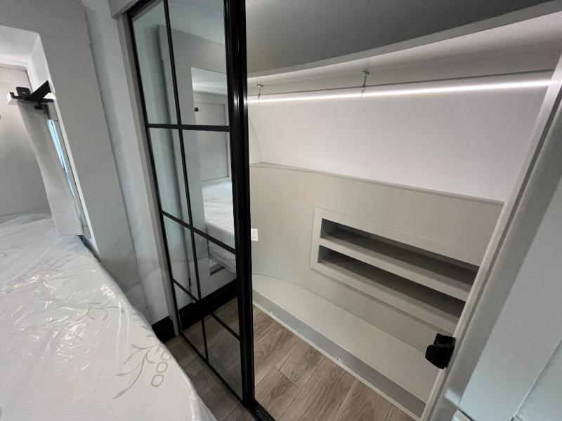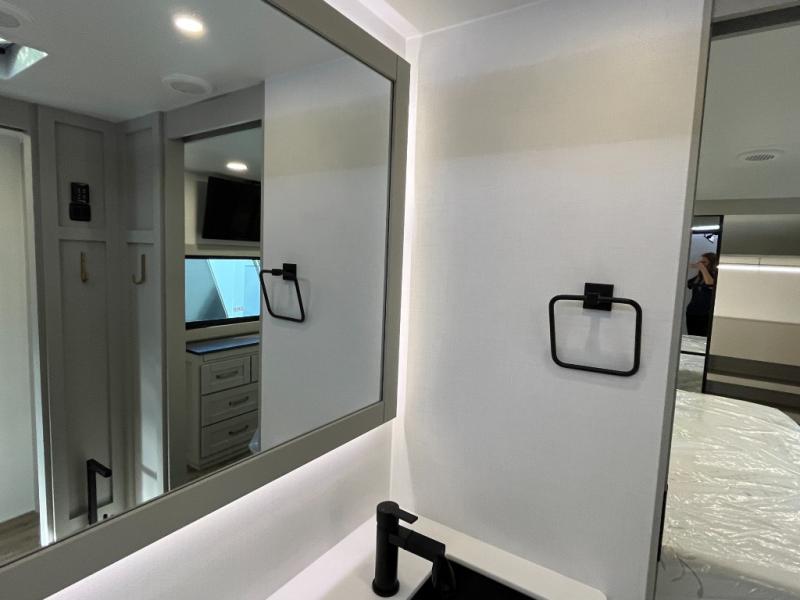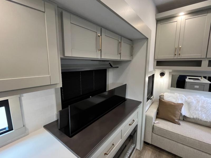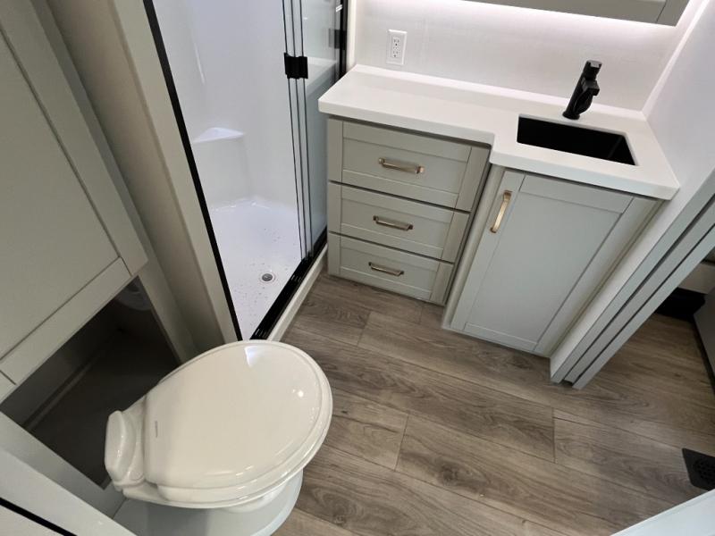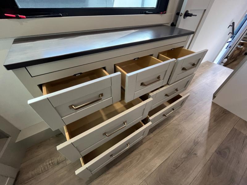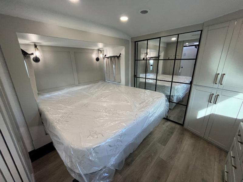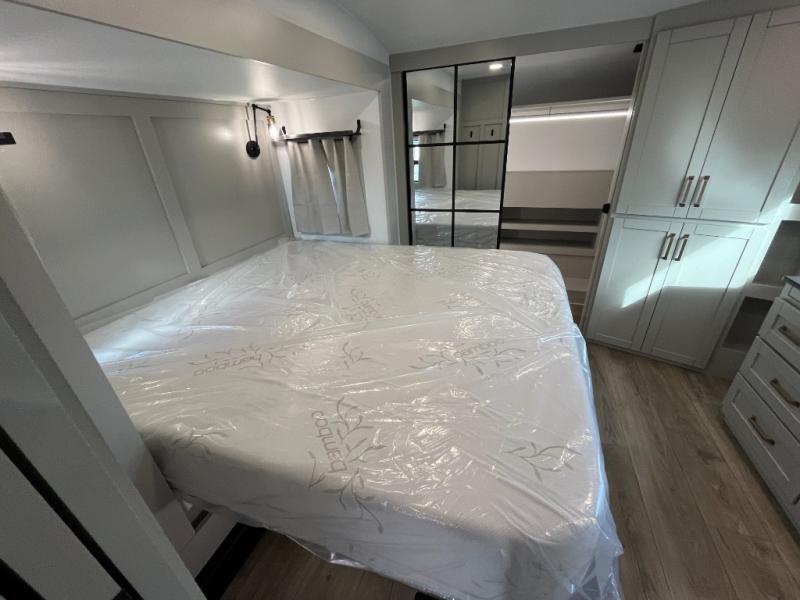 The Brinkley mid-profile Model Z fifth wheels bring you clean lines and an upscale look with plenty of style and exciting new features like the industry first brass plumbing connections. These units also feature an automotive grade front cap, plenty of exterior storage, exterior hot and cold showers, and wide stance leveling jacks for easy set up. Residential frameless windows provide a clean look and beautiful views, and ample electrical outlets and 6 USB/USB-C outlets allow all of your electronics and appliances to easily be used and charged.