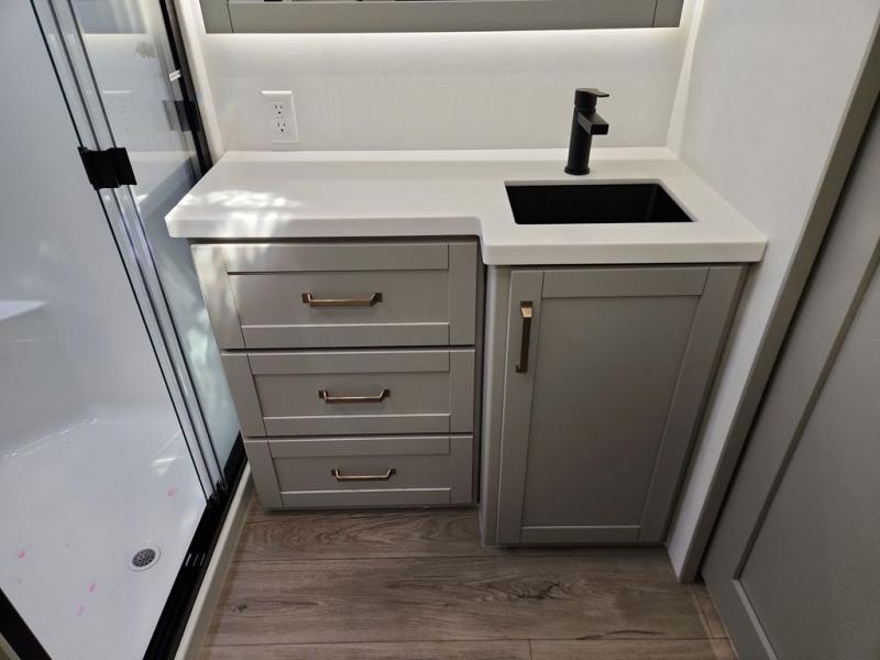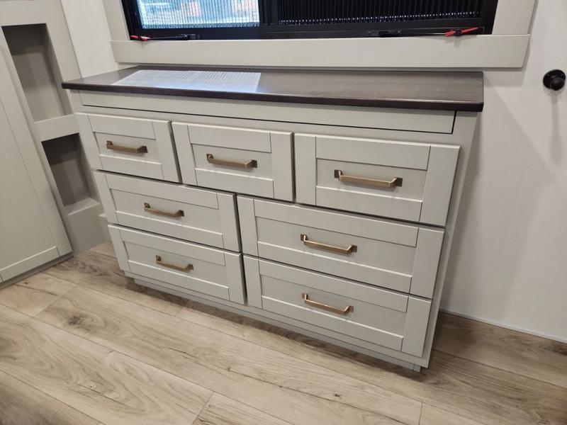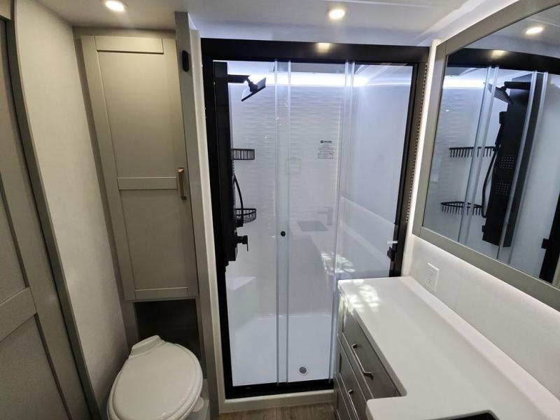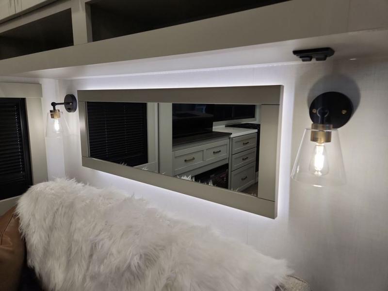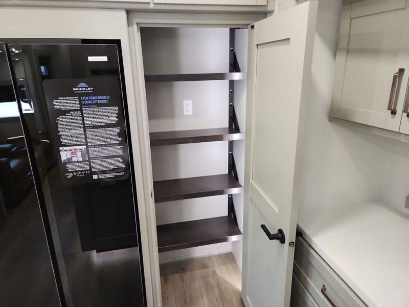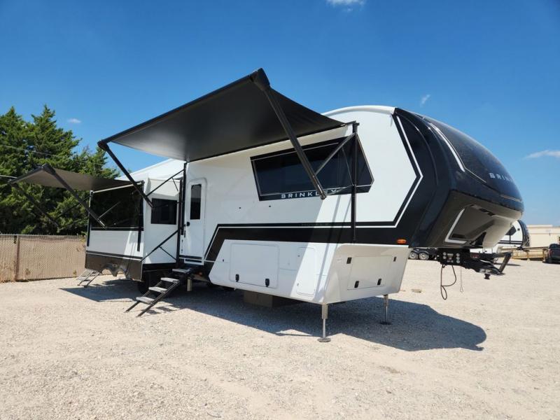 The Brinkley mid-profile Model Z fifth wheels bring you clean lines and an upscale look with plenty of style and exciting new features like the industry first brass plumbing connections. These units also feature an automotive grade front cap, plenty of exterior storage, exterior hot and cold showers, and wide stance leveling jacks for easy set up. Residential frameless windows provide a clean look and beautiful views, and ample electrical outlets and 6 USB/USB-C outlets allow all of your electronics and appliances to easily be used and charged.