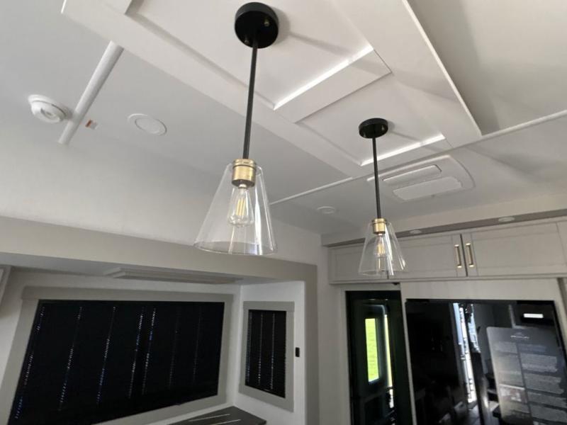 The Brinkley mid-profile Model Z fifth wheels bring you clean lines and an upscale look with plenty of style and exciting new features like the industry first brass plumbing connections. These units also feature an automotive grade front cap, plenty of exterior storage, exterior hot and cold showers, and wide stance leveling jacks for easy set up. Residential frameless windows provide a clean look and beautiful views, and ample electrical outlets and 6 USB/USB-C outlets allow all of your electronics and appliances to easily be used and charged.