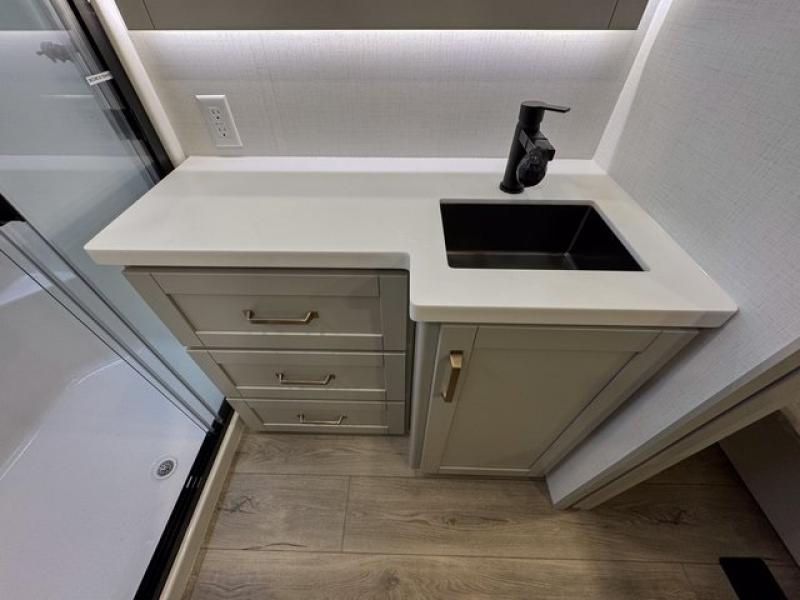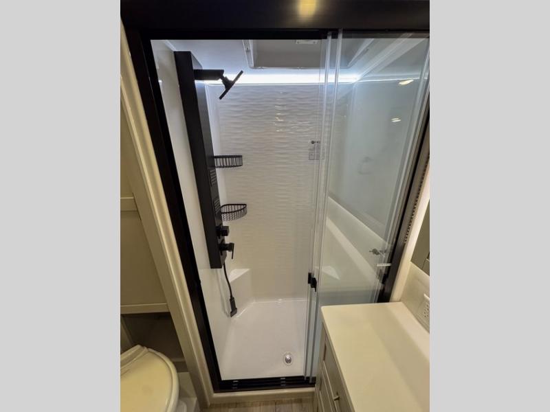 The Brinkley mid-profile Model Z fifth wheels bring you clean lines and an upscale look with plenty of style and exciting new features like the industry first brass plumbing connections. These units also feature an automotive grade front cap, plenty of exterior storage, exterior hot and cold showers, and wide stance leveling jacks for easy set up. Residential frameless windows provide a clean look and beautiful views, and ample electrical outlets and 6 USB/USB-C outlets allow all of your electronics and appliances to easily be used and charged.