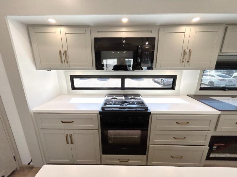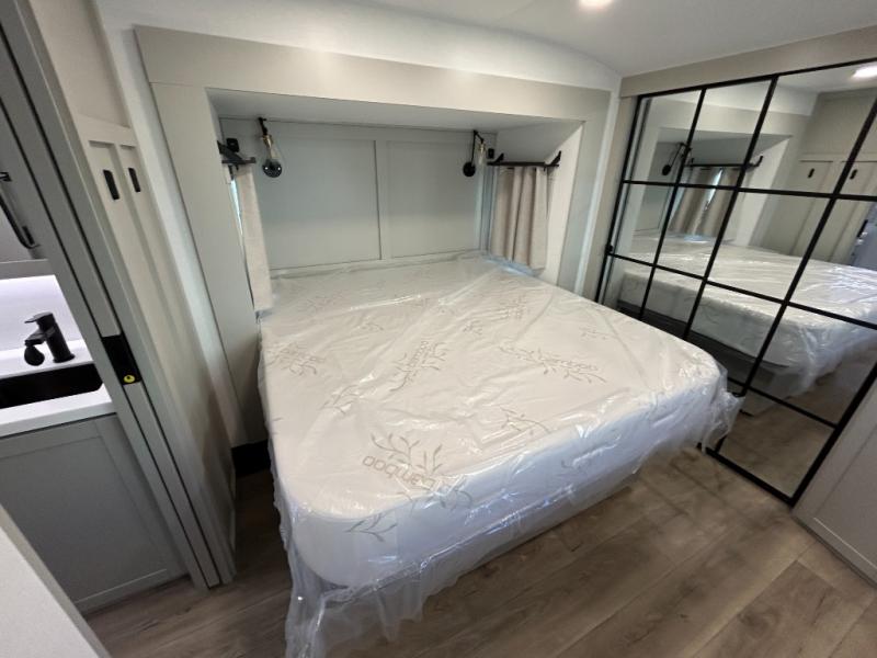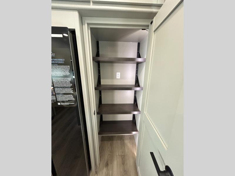 The Brinkley mid-profile Model Z fifth wheels bring you clean lines and an upscale look with plenty of style and exciting new features like the industry first brass plumbing connections. These units also feature an automotive grade front cap, plenty of exterior storage, exterior hot and cold showers, and wide stance leveling jacks for easy set up. Residential frameless windows provide a clean look and beautiful views, and ample electrical outlets and 6 USB/USB-C outlets allow all of your electronics and appliances to easily be used and charged.