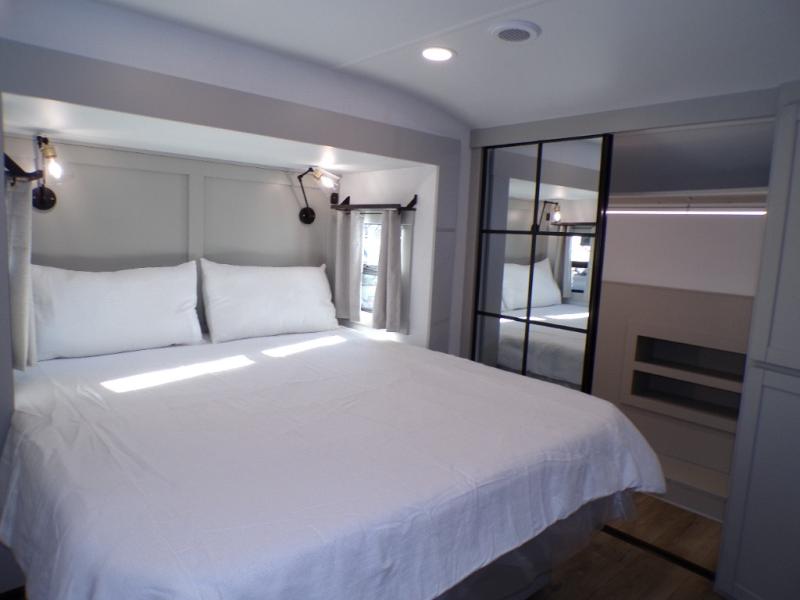 The Brinkley mid-profile Model Z fifth wheels bring you clean lines and an upscale look with plenty of style and exciting new features like the industry first brass plumbing connections. These units also feature an automotive grade front cap, plenty of exterior storage, exterior hot and cold showers, and wide stance leveling jacks for easy set up. Residential frameless windows provide a clean look and beautiful views, and ample electrical outlets and 6 USB/USB-C outlets allow all of your electronics and appliances to easily be used and charged.