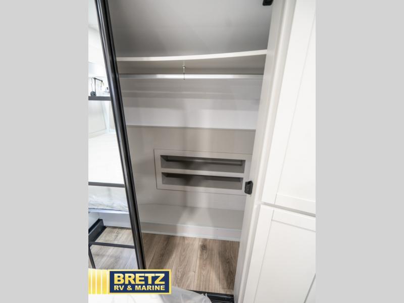 The Brinkley mid-profile Model Z fifth wheels bring you clean lines and an upscale look with plenty of style and exciting new features like the industry first brass plumbing connections. These units also feature an automotive grade front cap, plenty of exterior storage, exterior hot and cold showers, and wide stance leveling jacks for easy set up. Residential frameless windows provide a clean look and beautiful views, and ample electrical outlets and 6 USB/USB-C outlets allow all of your electronics and appliances to easily be used and charged.