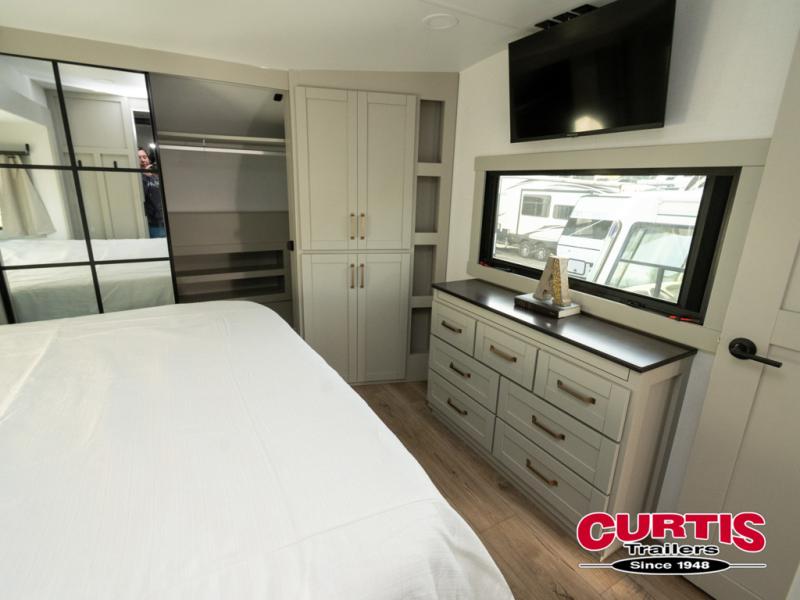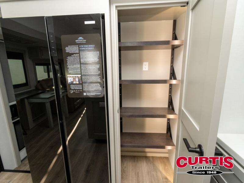 The Brinkley mid-profile Model Z fifth wheels bring you clean lines and an upscale look with plenty of style and exciting new features like the industry first brass plumbing connections. These units also feature an automotive grade front cap, plenty of exterior storage, exterior hot and cold showers, and wide stance leveling jacks for easy set up. Residential frameless windows provide a clean look and beautiful views, and ample electrical outlets and 6 USB/USB-C outlets allow all of your electronics and appliances to easily be used and charged.