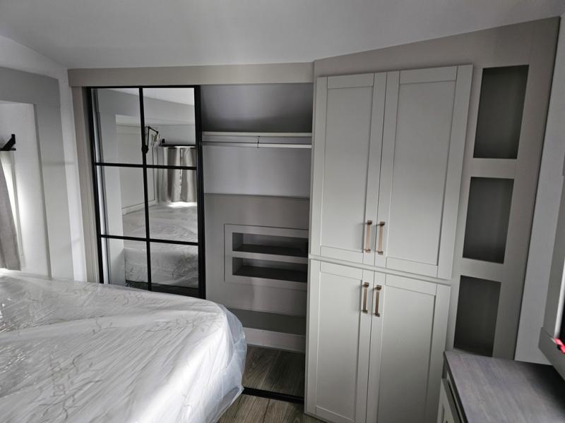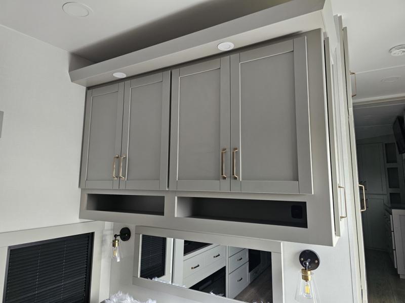 The Brinkley mid-profile Model Z fifth wheels bring you clean lines and an upscale look with plenty of style and exciting new features like the industry first brass plumbing connections. These units also feature an automotive grade front cap, plenty of exterior storage, exterior hot and cold showers, and wide stance leveling jacks for easy set up. Residential frameless windows provide a clean look and beautiful views, and ample electrical outlets and 6 USB/USB-C outlets allow all of your electronics and appliances to easily be used and charged.