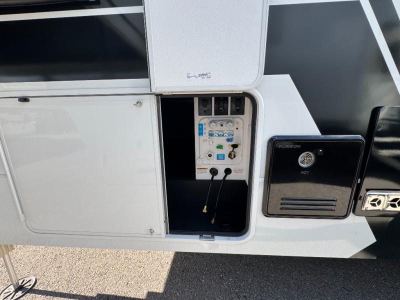 The Brinkley mid-profile Model Z fifth wheels bring you clean lines and an upscale look with plenty of style and exciting new features like the industry first brass plumbing connections. These units also feature an automotive grade front cap, plenty of exterior storage, dual exterior hot and cold showers, and wide stance leveling jacks for easy set up. Residential frameless windows provide a clean look and beautiful views, and ample electrical outlets and 6 USB/USB-C outlets allow all of your electronics and appliances to easily be used and charged.