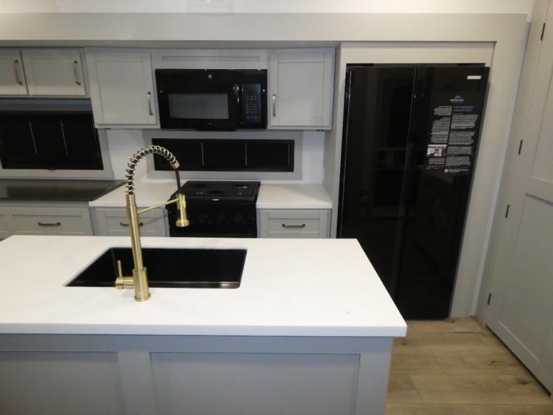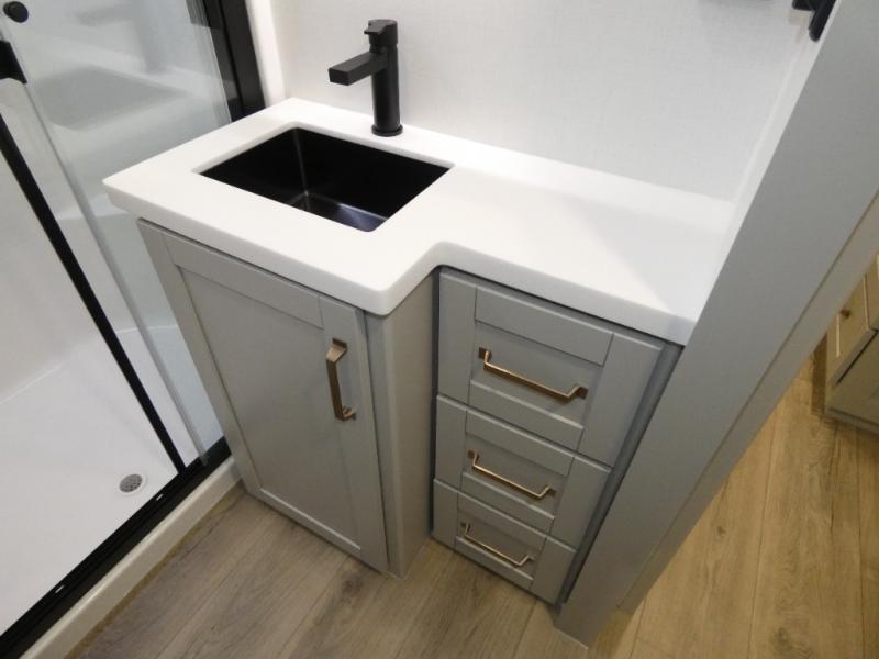 The Brinkley mid-profile Model Z fifth wheels bring you clean lines and an upscale look with plenty of style and exciting new features like the industry first brass plumbing connections. These units also feature an automotive grade front cap, plenty of exterior storage, dual exterior hot and cold showers, and wide stance leveling jacks for easy set up. Residential frameless windows provide a clean look and beautiful views, and ample electrical outlets and 6 USB/USB-C outlets allow all of your electronics and appliances to easily be used and charged.