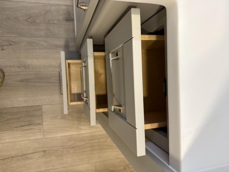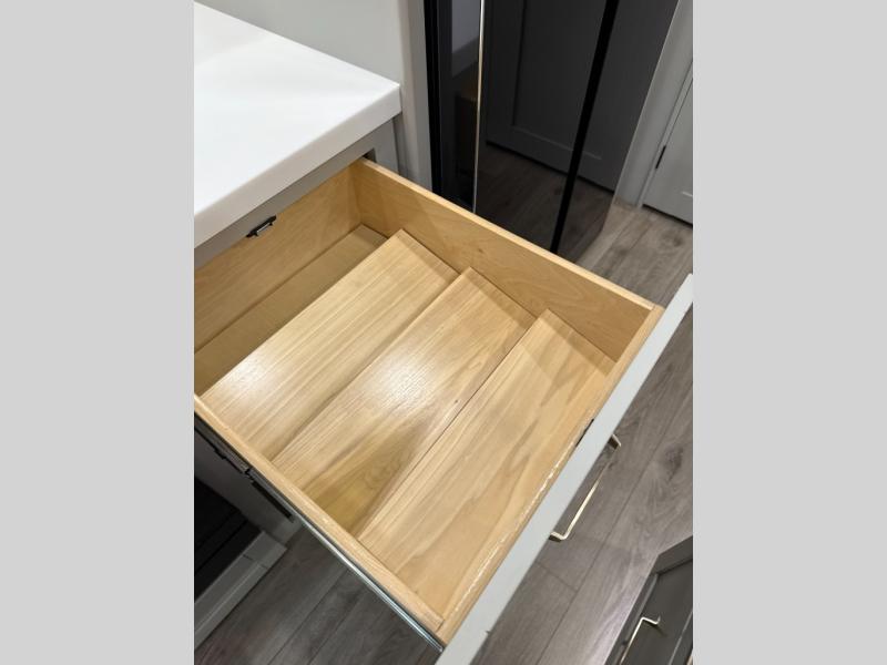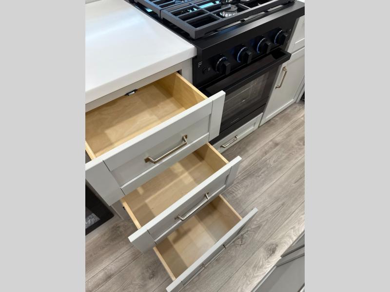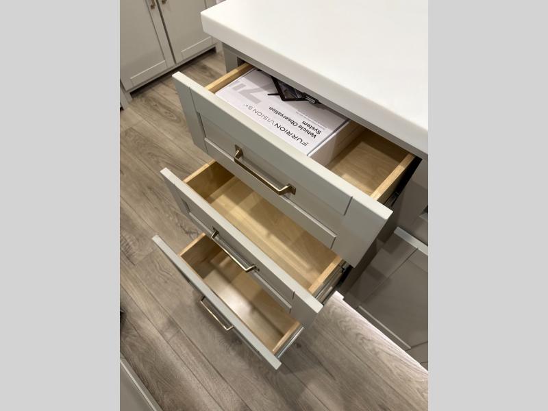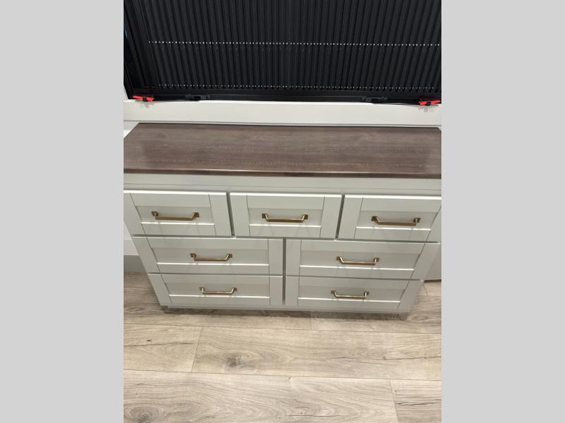 The Brinkley mid-profile Model Z fifth wheels bring you clean lines and an upscale look with plenty of style and exciting new features like the industry first brass plumbing connections. These units also feature an automotive grade front cap, plenty of exterior storage, dual exterior hot and cold showers, and wide stance leveling jacks for easy set up. Residential frameless windows provide a clean look and beautiful views, and ample electrical outlets and 6 USB/USB-C outlets allow all of your electronics and appliances to easily be used and charged.