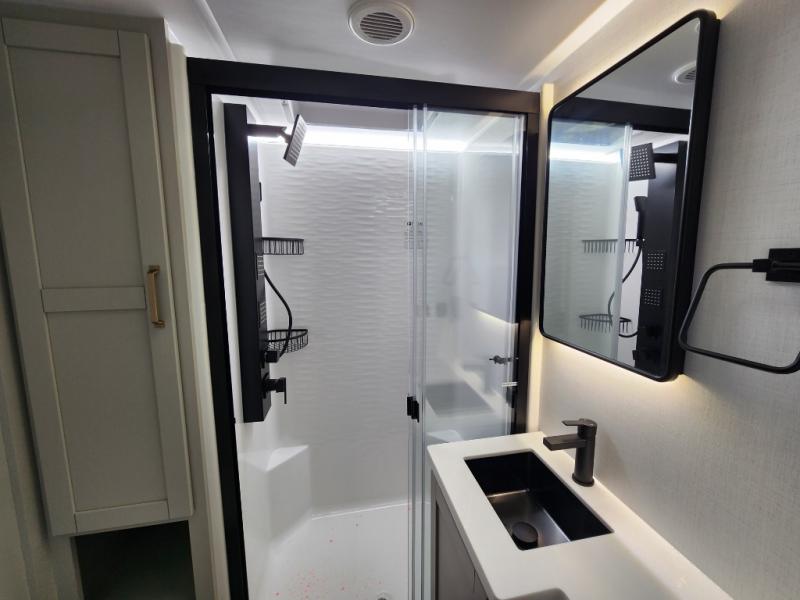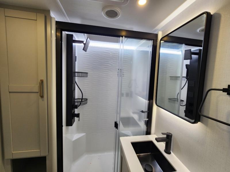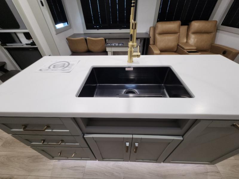 The Brinkley mid-profile Model Z fifth wheels bring you clean lines and an upscale look with plenty of style and exciting new features like the industry first brass plumbing connections. These units also feature an automotive grade front cap, plenty of exterior storage, dual exterior hot and cold showers, and wide stance leveling jacks for easy set up. Residential frameless windows provide a clean look and beautiful views, and ample electrical outlets and 6 USB/USB-C outlets allow all of your electronics and appliances to easily be used and charged.