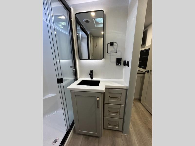 The Brinkley mid-profile Model Z fifth wheels bring you clean lines and an upscale look with plenty of style and exciting new features like the industry first brass plumbing connections. These units also feature an automotive grade front cap, plenty of exterior storage, dual exterior hot and cold showers, and wide stance leveling jacks for easy set up. Residential frameless windows provide a clean look and beautiful views, and ample electrical outlets and 6 USB/USB-C outlets allow all of your electronics and appliances to easily be used and charged.
