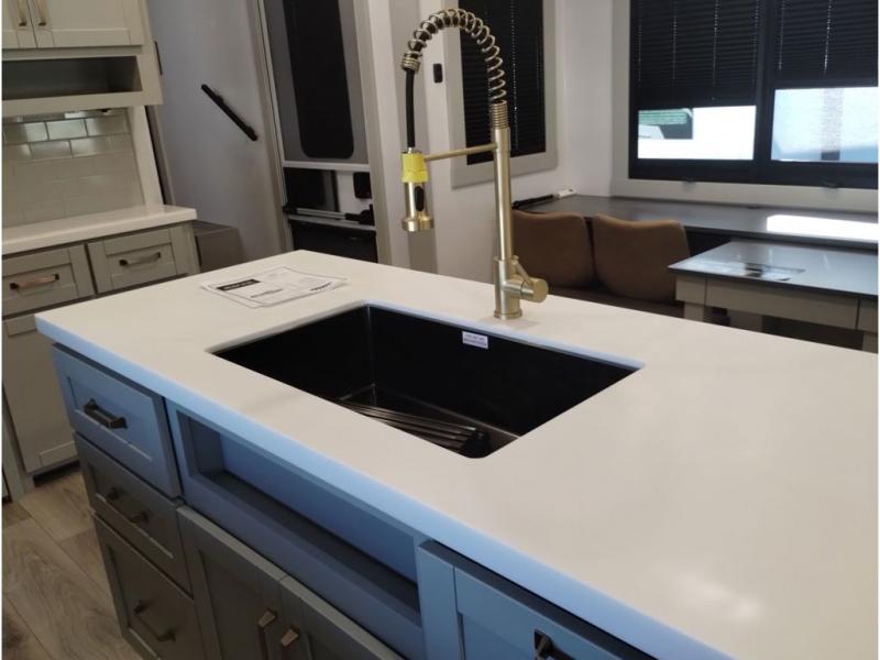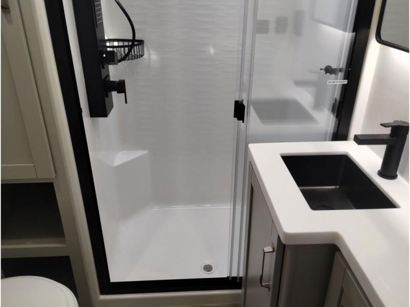 The Brinkley mid-profile Model Z fifth wheels bring you clean lines and an upscale look with plenty of style and exciting new features like the industry first brass plumbing connections. These units also feature an automotive grade front cap, plenty of exterior storage, dual exterior hot and cold showers, and wide stance leveling jacks for easy set up. Residential frameless windows provide a clean look and beautiful views, and ample electrical outlets and 6 USB/USB-C outlets allow all of your electronics and appliances to easily be used and charged.