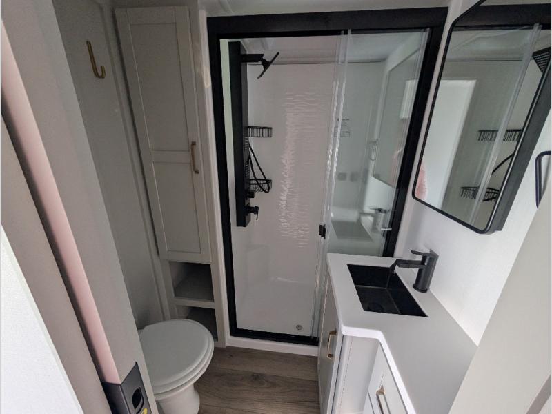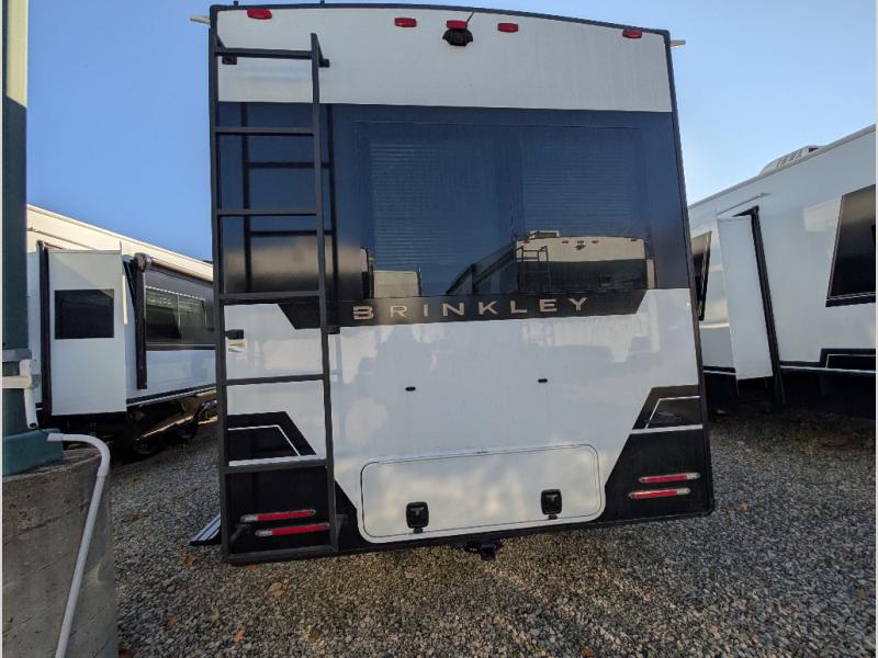 The Brinkley mid-profile Model Z fifth wheels bring you clean lines and an upscale look with plenty of style and exciting new features like the industry first brass plumbing connections. These units also feature an automotive grade front cap, plenty of exterior storage, dual exterior hot and cold showers, and wide stance leveling jacks for easy set up. Residential frameless windows provide a clean look and beautiful views, and ample electrical outlets and 6 USB/USB-C outlets allow all of your electronics and appliances to easily be used and charged.