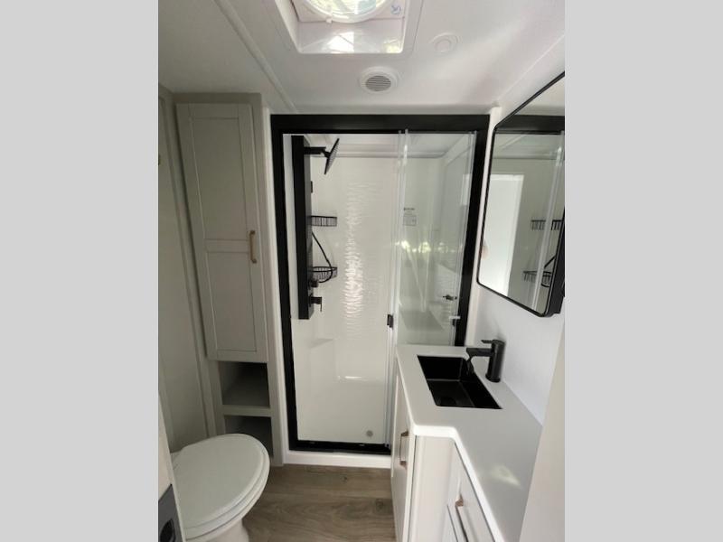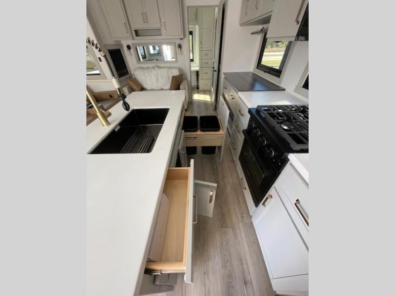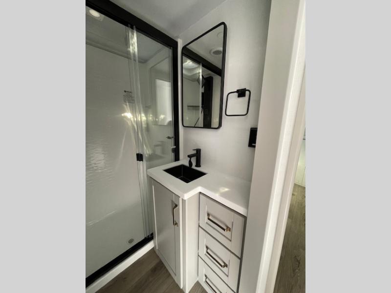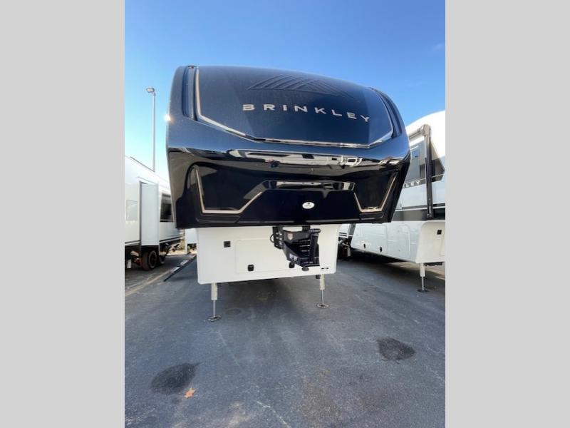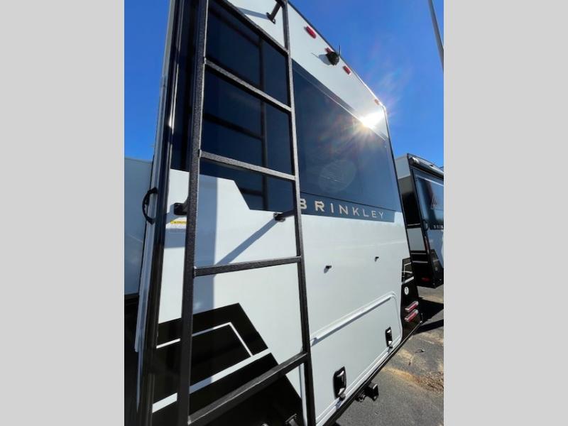 The Brinkley mid-profile Model Z fifth wheels bring you clean lines and an upscale look with plenty of style and exciting new features like the industry first brass plumbing connections. These units also feature an automotive grade front cap, plenty of exterior storage, dual exterior hot and cold showers, and wide stance leveling jacks for easy set up. Residential frameless windows provide a clean look and beautiful views, and ample electrical outlets and 6 USB/USB-C outlets allow all of your electronics and appliances to easily be used and charged.