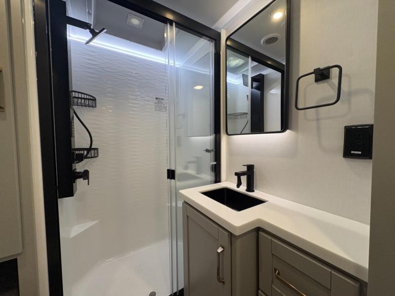 The Brinkley mid-profile Model Z fifth wheels bring you clean lines and an upscale look with plenty of style and exciting new features like the industry first brass plumbing connections. These units also feature an automotive grade front cap, plenty of exterior storage, dual exterior hot and cold showers, and wide stance leveling jacks for easy set up. Residential frameless windows provide a clean look and beautiful views, and ample electrical outlets and 6 USB/USB-C outlets allow all of your electronics and appliances to easily be used and charged.