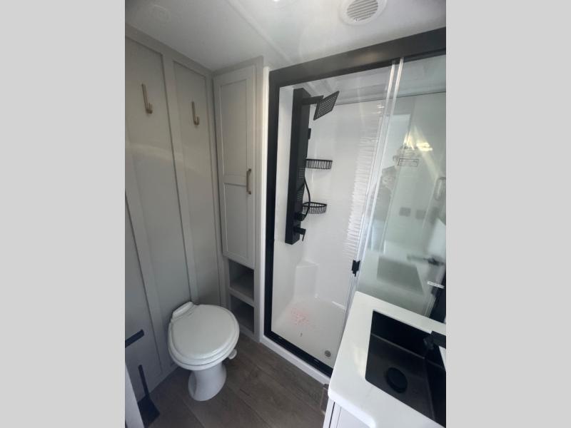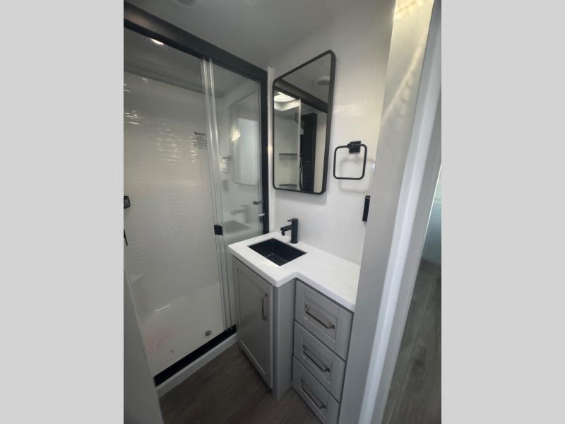 The Brinkley mid-profile Model Z fifth wheels bring you clean lines and an upscale look with plenty of style and exciting new features like the industry first brass plumbing connections. These units also feature an automotive grade front cap, plenty of exterior storage, dual exterior hot and cold showers, and wide stance leveling jacks for easy set up. Residential frameless windows provide a clean look and beautiful views, and ample electrical outlets and 6 USB/USB-C outlets allow all of your electronics and appliances to easily be used and charged.