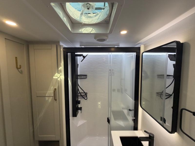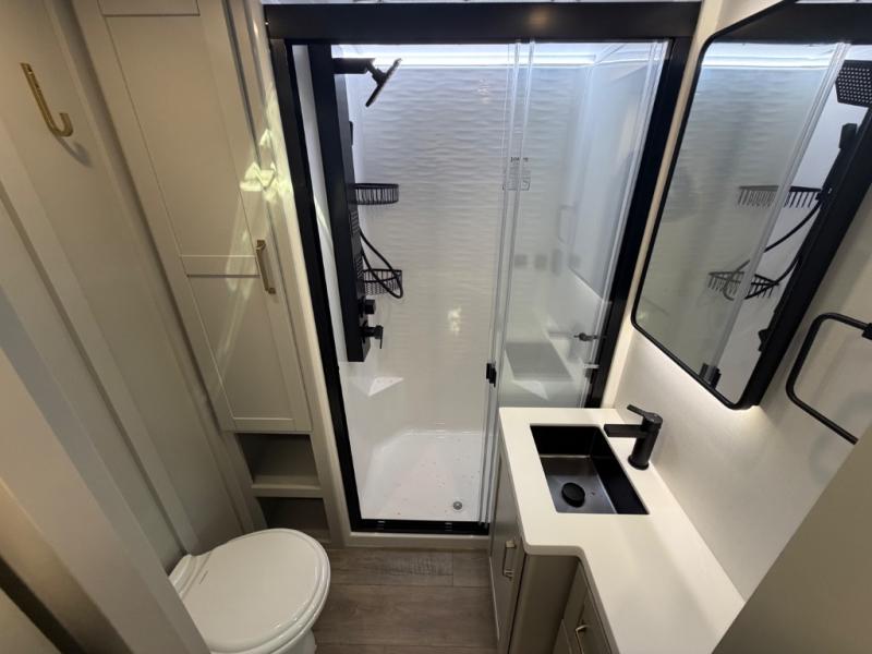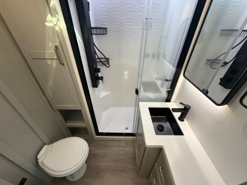 The Brinkley mid-profile Model Z fifth wheels bring you clean lines and an upscale look with plenty of style and exciting new features like the industry first brass plumbing connections. These units also feature an automotive grade front cap, plenty of exterior storage, dual exterior hot and cold showers, and wide stance leveling jacks for easy set up. Residential frameless windows provide a clean look and beautiful views, and ample electrical outlets and 6 USB/USB-C outlets allow all of your electronics and appliances to easily be used and charged.