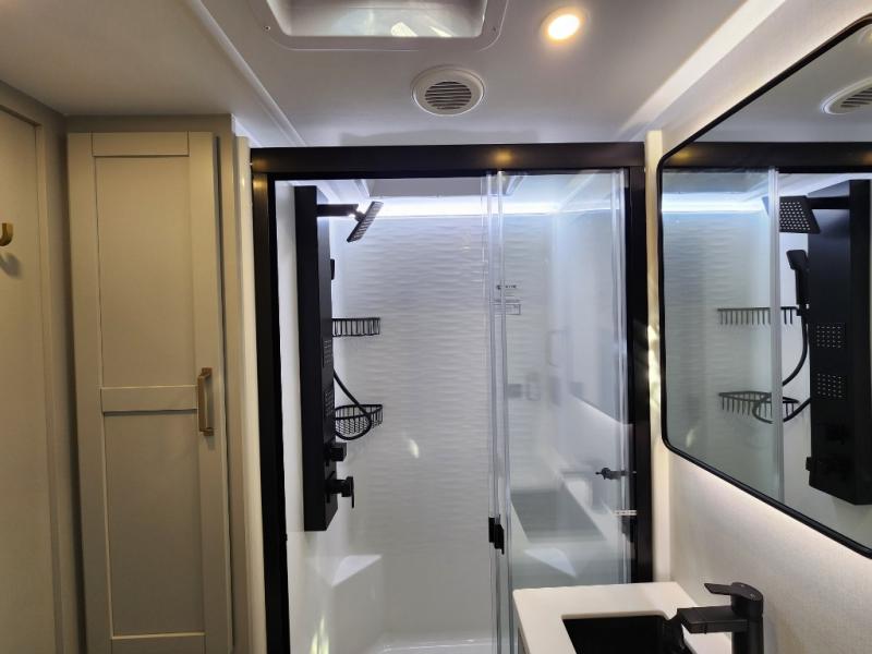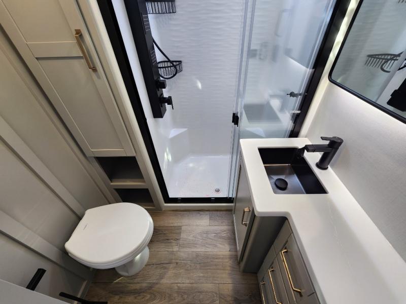 The Brinkley mid-profile Model Z fifth wheels bring you clean lines and an upscale look with plenty of style and exciting new features like the industry first brass plumbing connections. These units also feature an automotive grade front cap, plenty of exterior storage, dual exterior hot and cold showers, and wide stance leveling jacks for easy set up. Residential frameless windows provide a clean look and beautiful views, and ample electrical outlets and 6 USB/USB-C outlets allow all of your electronics and appliances to easily be used and charged.