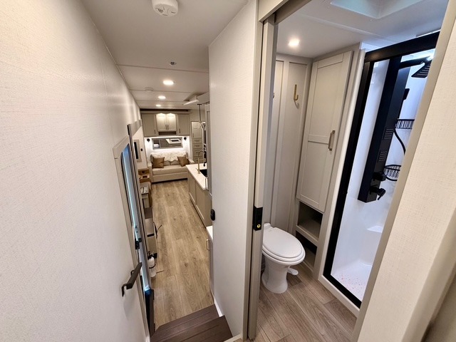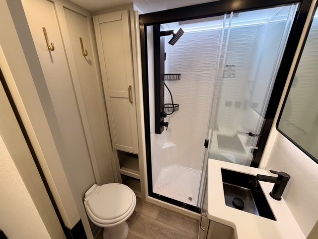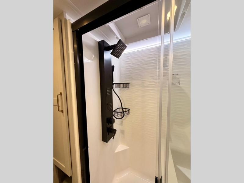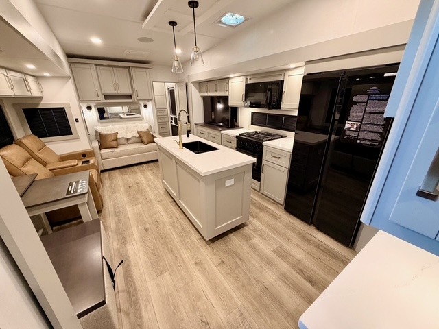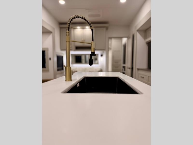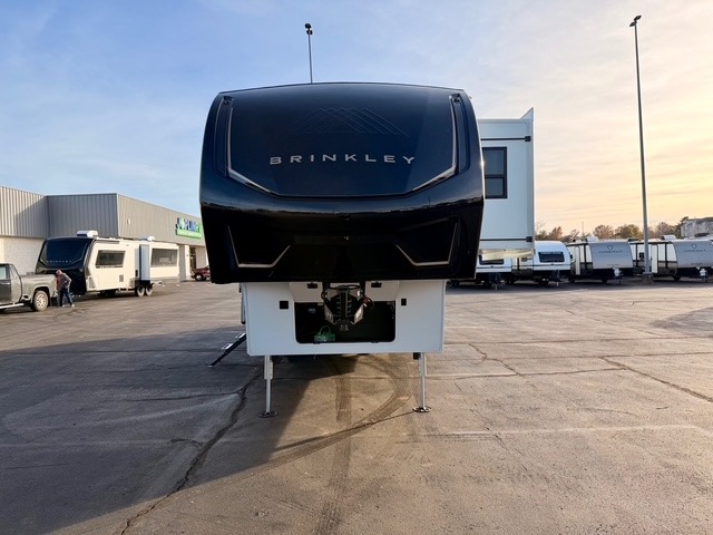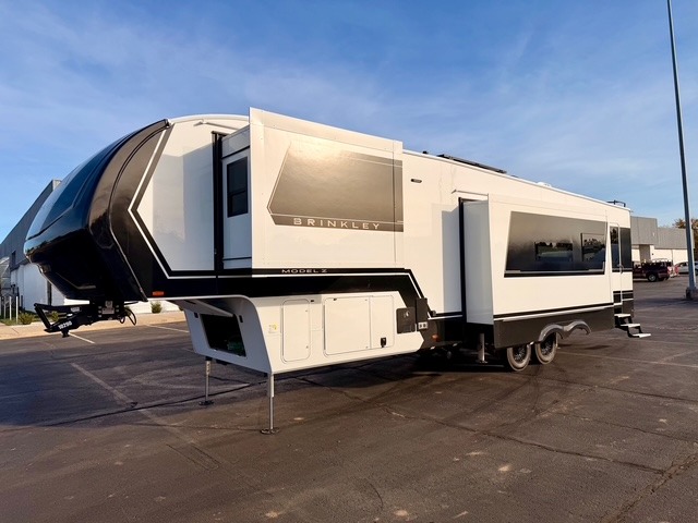 The Brinkley mid-profile Model Z fifth wheels bring you clean lines and an upscale look with plenty of style and exciting new features like the industry first brass plumbing connections. These units also feature an automotive grade front cap, plenty of exterior storage, dual exterior hot and cold showers, and wide stance leveling jacks for easy set up. Residential frameless windows provide a clean look and beautiful views, and ample electrical outlets and 6 USB/USB-C outlets allow all of your electronics and appliances to easily be used and charged.