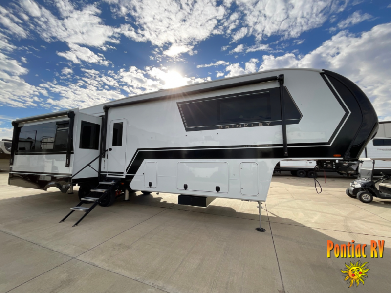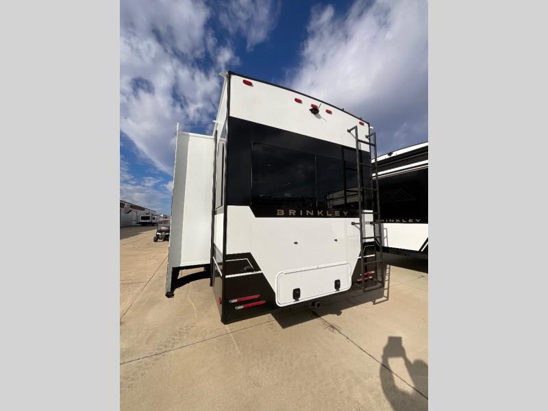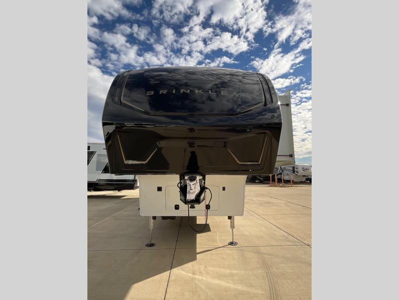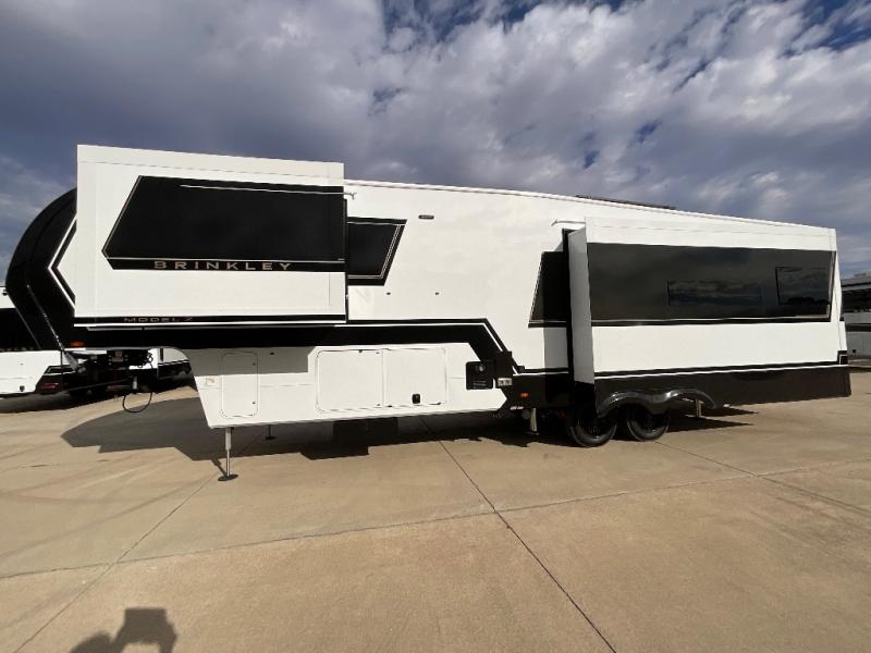 The Brinkley mid-profile Model Z fifth wheels bring you clean lines and an upscale look with plenty of style and exciting new features like the industry first brass plumbing connections. These units also feature an automotive grade front cap, plenty of exterior storage, dual exterior hot and cold showers, and wide stance leveling jacks for easy set up. Residential frameless windows provide a clean look and beautiful views, and ample electrical outlets and 6 USB/USB-C outlets allow all of your electronics and appliances to easily be used and charged.