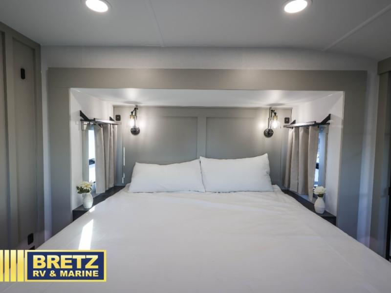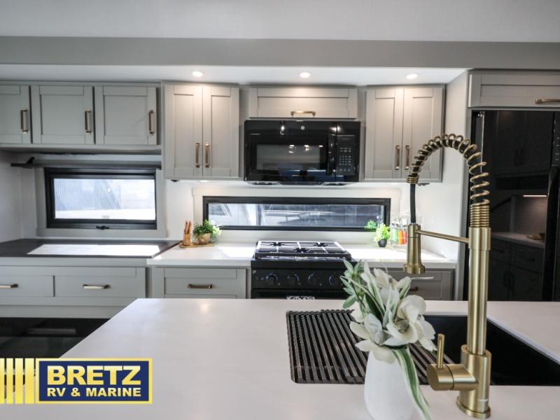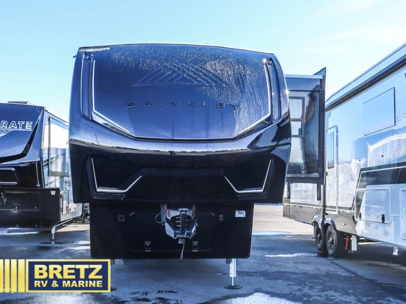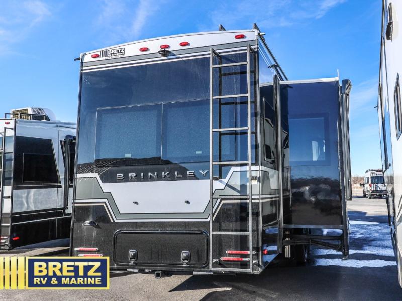 The Brinkley mid-profile Model Z fifth wheels bring you clean lines and an upscale look with plenty of style and exciting new features like the industry first brass plumbing connections. These units also feature an automotive grade front cap, plenty of exterior storage, dual exterior hot and cold showers, and wide stance leveling jacks for easy set up. Residential frameless windows provide a clean look and beautiful views, and ample electrical outlets and 6 USB/USB-C outlets allow all of your electronics and appliances to easily be used and charged.