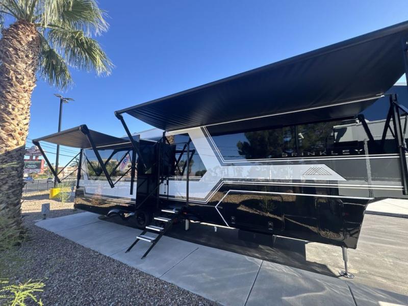 The Brinkley mid-profile Model Z fifth wheels bring you clean lines and an upscale look with plenty of style and exciting new features like the industry first brass plumbing connections. These units also feature an automotive grade front cap, plenty of exterior storage, dual exterior hot and cold showers, and wide stance leveling jacks for easy set up. Residential frameless windows provide a clean look and beautiful views, and ample electrical outlets and 6 USB/USB-C outlets allow all of your electronics and appliances to easily be used and charged.