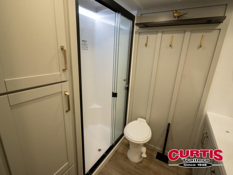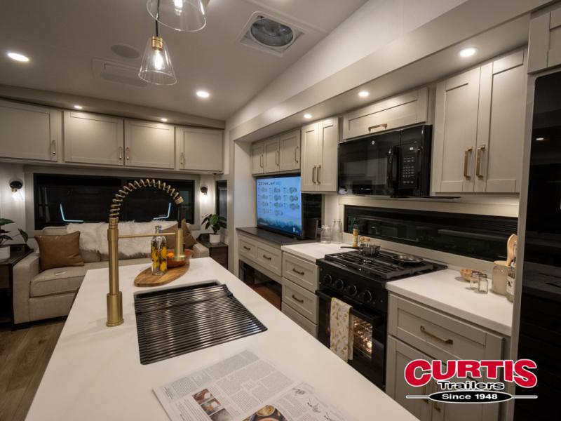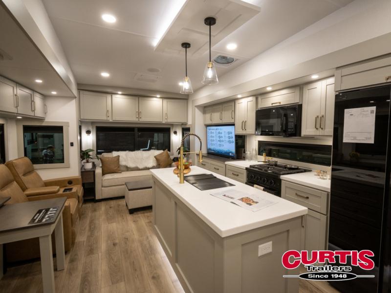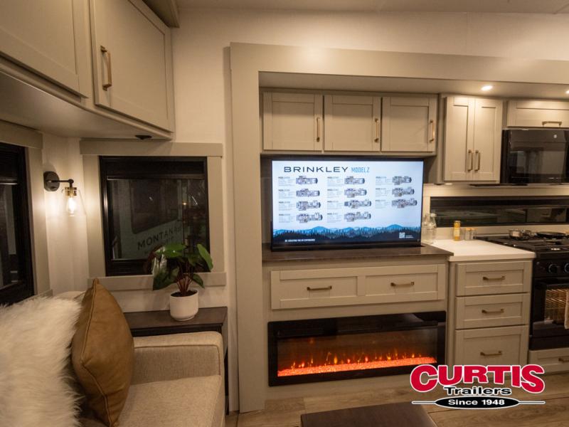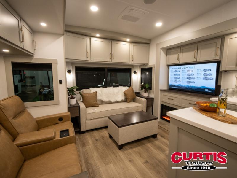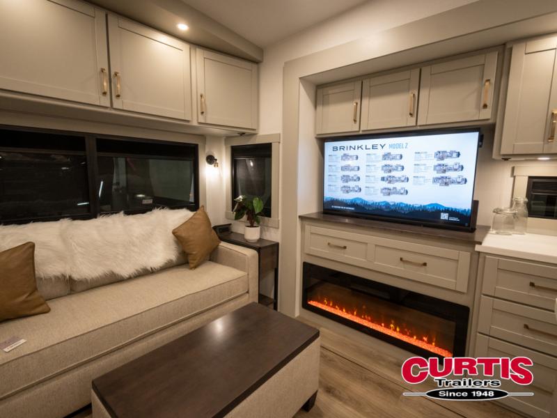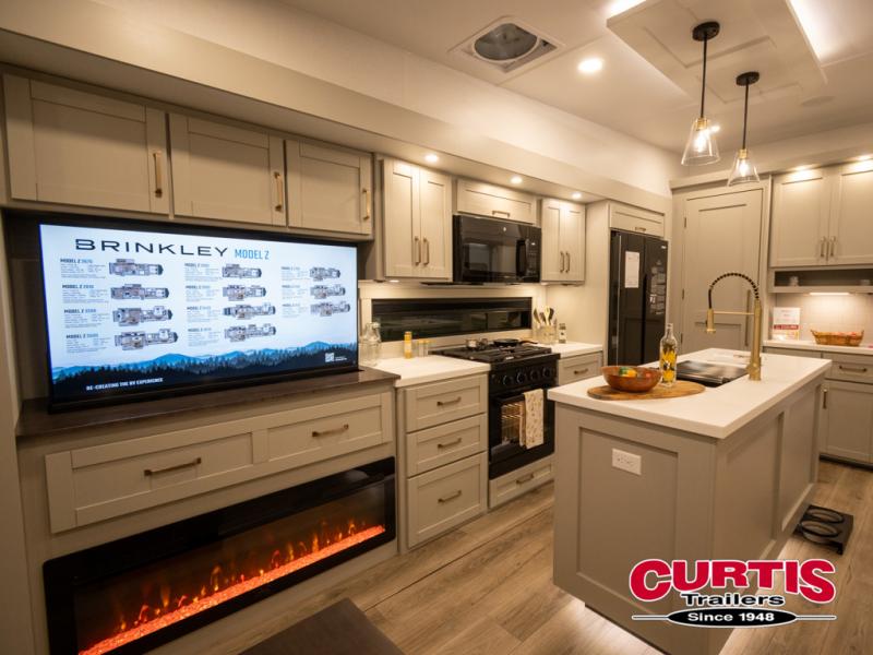 The Brinkley mid-profile Model Z fifth wheels bring you clean lines and an upscale look with plenty of style and exciting new features like the industry first brass plumbing connections. These units also feature an automotive grade front cap, plenty of exterior storage, dual exterior hot and cold showers, and wide stance leveling jacks for easy set up. Residential frameless windows provide a clean look and beautiful views, and ample electrical outlets and 6 USB/USB-C outlets allow all of your electronics and appliances to easily be used and charged.