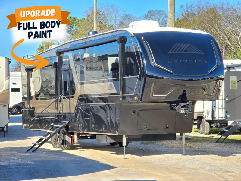 The Brinkley mid-profile Model Z fifth wheels bring you clean lines and an upscale look with plenty of style and exciting new features like the industry first brass plumbing connections. These units also feature an automotive grade front cap, plenty of exterior storage, dual exterior hot and cold showers, and wide stance leveling jacks for easy set up. Residential frameless windows provide a clean look and beautiful views, and ample electrical outlets and 6 USB/USB-C outlets allow all of your electronics and appliances to easily be used and charged.