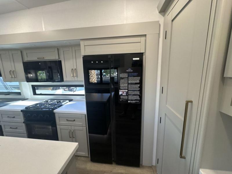 The Brinkley mid-profile Model Z fifth wheels bring you clean lines and an upscale look with plenty of style and exciting new features like the industry first brass plumbing connections. These units also feature an automotive grade front cap, plenty of exterior storage, dual exterior hot and cold showers, and wide stance leveling jacks for easy set up. Residential frameless windows provide a clean look and beautiful views, and ample electrical outlets and 6 USB/USB-C outlets allow all of your electronics and appliances to easily be used and charged.