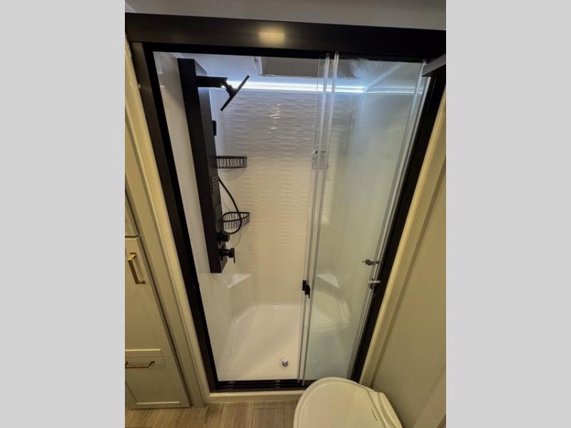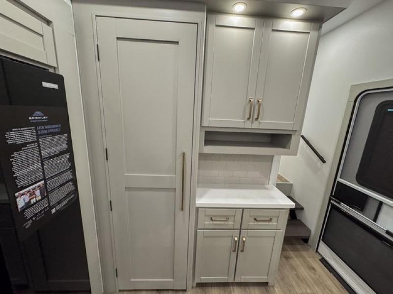 The Brinkley mid-profile Model Z fifth wheels bring you clean lines and an upscale look with plenty of style and exciting new features like the industry first brass plumbing connections. These units also feature an automotive grade front cap, plenty of exterior storage, dual exterior hot and cold showers, and wide stance leveling jacks for easy set up. Residential frameless windows provide a clean look and beautiful views, and ample electrical outlets and 6 USB/USB-C outlets allow all of your electronics and appliances to easily be used and charged.