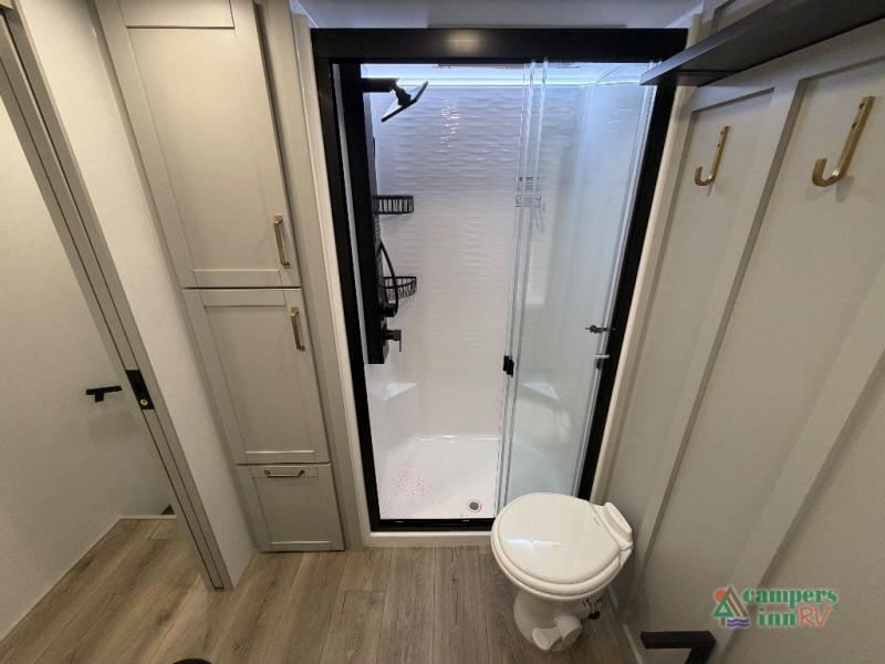 The Brinkley mid-profile Model Z fifth wheels bring you clean lines and an upscale look with plenty of style and exciting new features like the industry first brass plumbing connections. These units also feature an automotive grade front cap, plenty of exterior storage, dual exterior hot and cold showers, and wide stance leveling jacks for easy set up. Residential frameless windows provide a clean look and beautiful views, and ample electrical outlets and 6 USB/USB-C outlets allow all of your electronics and appliances to easily be used and charged.