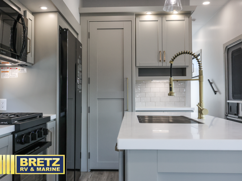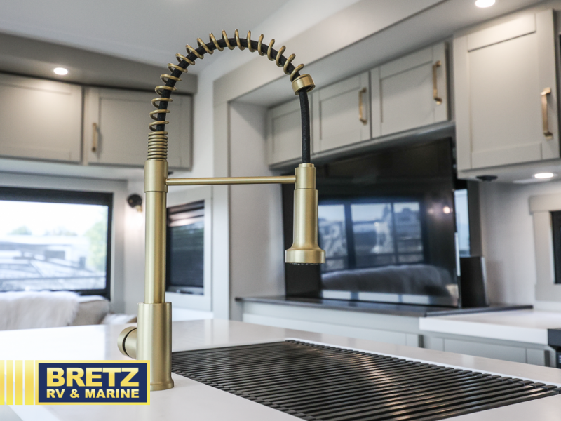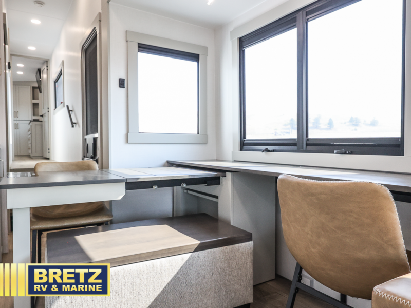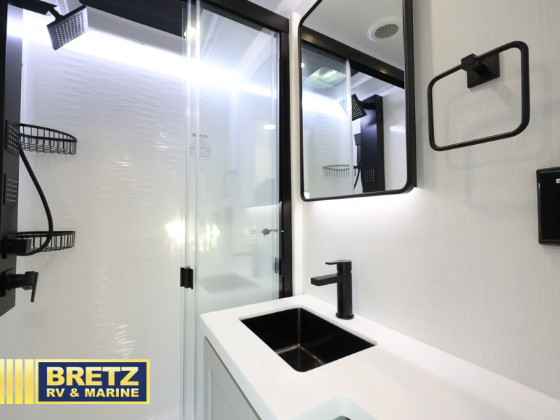 The Brinkley mid-profile Model Z fifth wheels bring you clean lines and an upscale look with plenty of style and exciting new features like the industry first brass plumbing connections. These units also feature an automotive grade front cap, plenty of exterior storage, dual exterior hot and cold showers, and wide stance leveling jacks for easy set up. Residential frameless windows provide a clean look and beautiful views, and ample electrical outlets and 6 USB/USB-C outlets allow all of your electronics and appliances to easily be used and charged.
