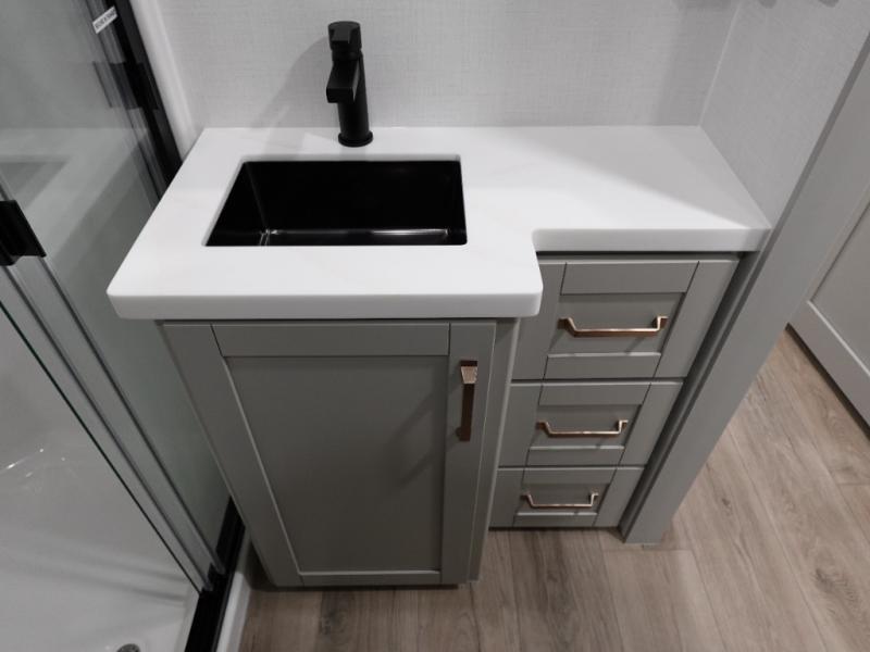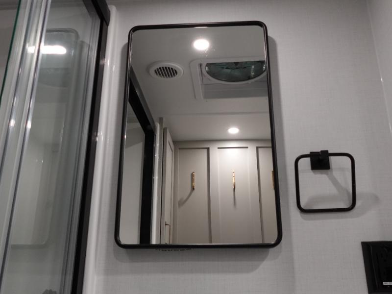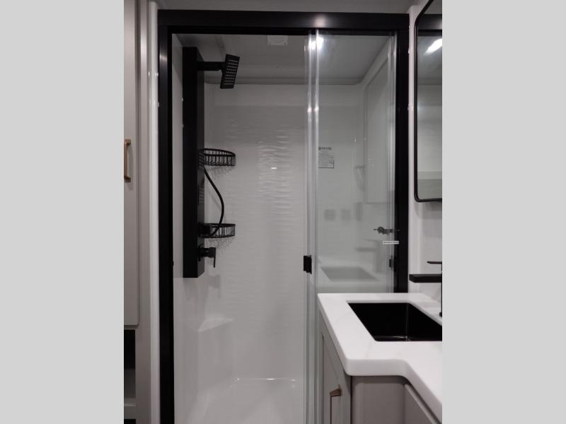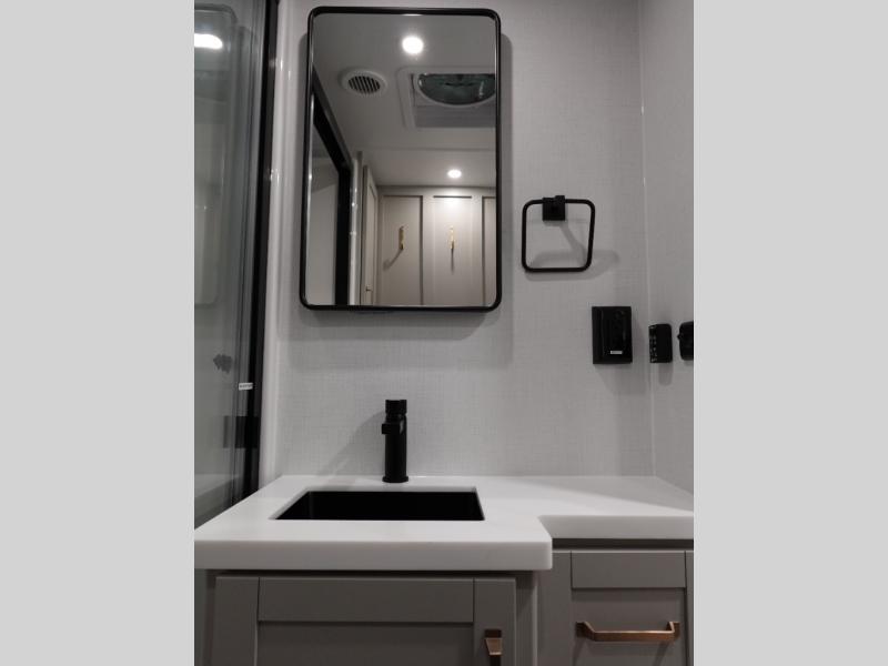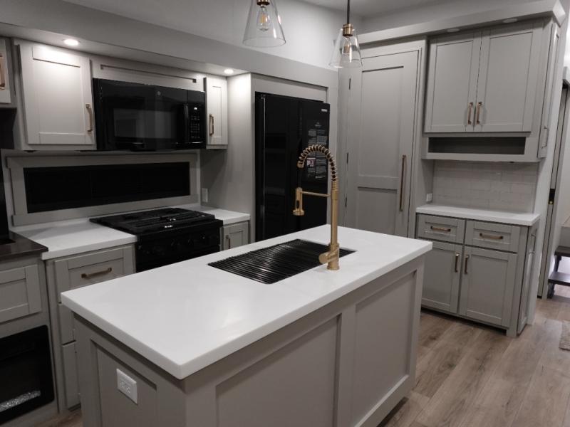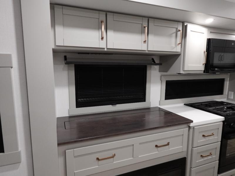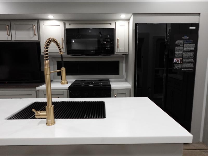 The Brinkley mid-profile Model Z fifth wheels bring you clean lines and an upscale look with plenty of style and exciting new features like the industry first brass plumbing connections. These units also feature an automotive grade front cap, plenty of exterior storage, dual exterior hot and cold showers, and wide stance leveling jacks for easy set up. Residential frameless windows provide a clean look and beautiful views, and ample electrical outlets and 6 USB/USB-C outlets allow all of your electronics and appliances to easily be used and charged.
