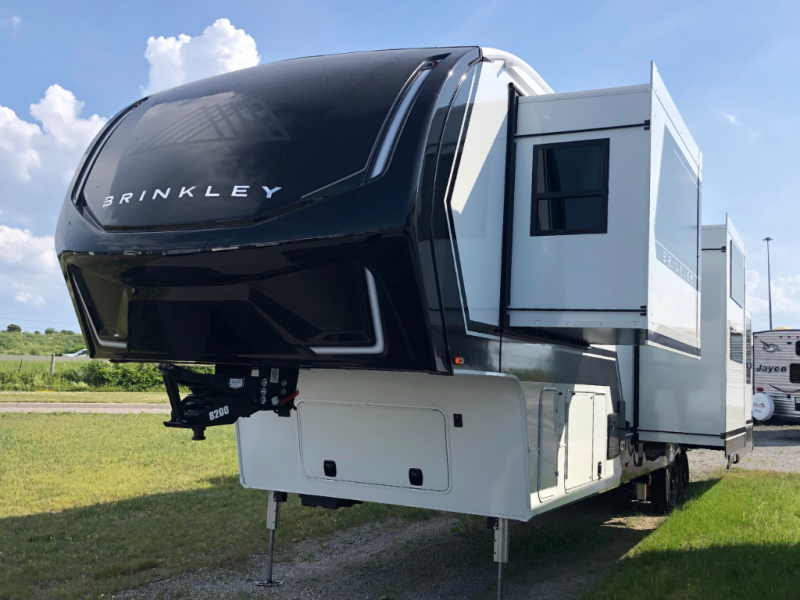 The Brinkley mid-profile Model Z fifth wheels bring you clean lines and an upscale look with plenty of style and exciting new features like the industry first brass plumbing connections. These units also feature an automotive grade front cap, plenty of exterior storage, dual exterior hot and cold showers, and wide stance leveling jacks for easy set up. Residential frameless windows provide a clean look and beautiful views, and ample electrical outlets and 6 USB/USB-C outlets allow all of your electronics and appliances to easily be used and charged.