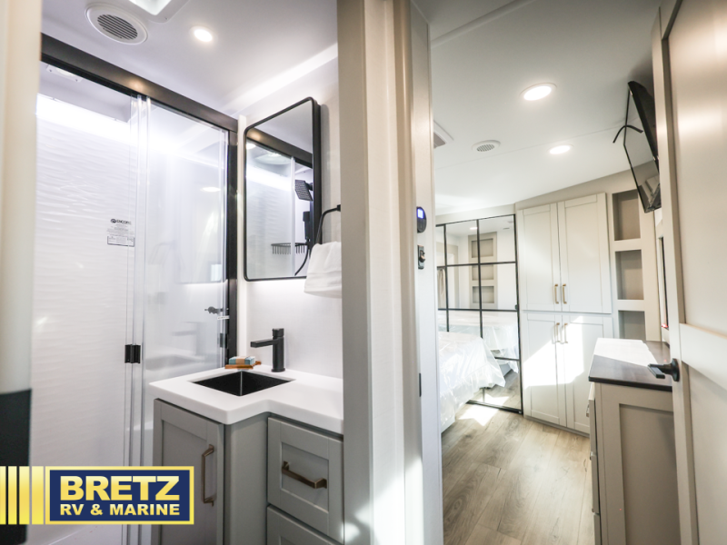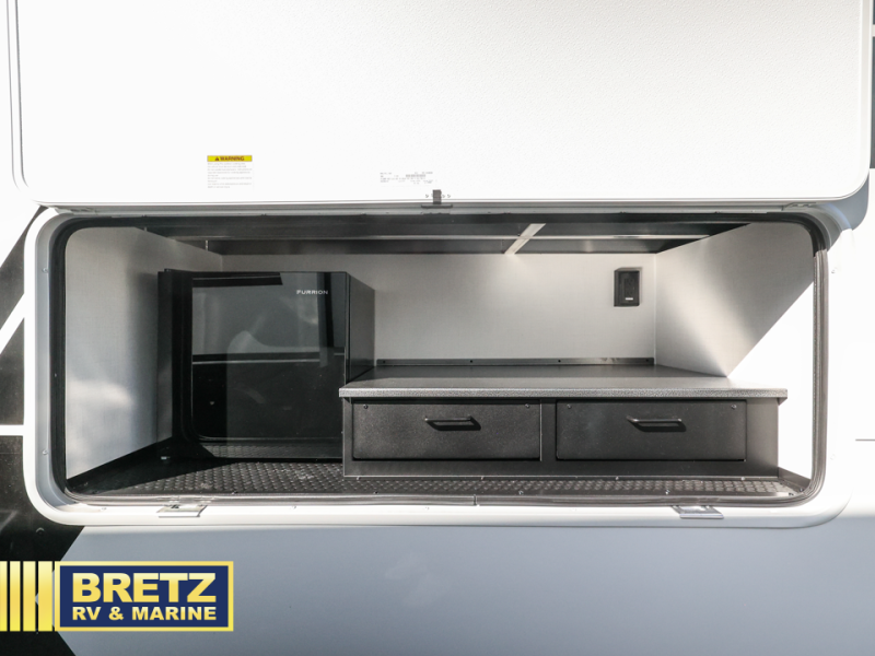 The Brinkley mid-profile Model Z fifth wheels bring you clean lines and an upscale look with plenty of style and exciting new features like the industry first brass plumbing connections. These units also feature an automotive grade front cap, plenty of exterior storage, dual exterior hot and cold showers, and wide stance leveling jacks for easy set up. Residential frameless windows provide a clean look and beautiful views, and ample electrical outlets and 6 USB/USB-C outlets allow all of your electronics and appliances to easily be used and charged.