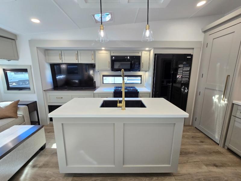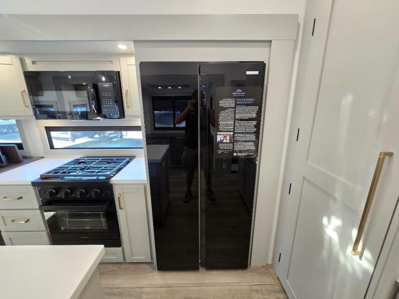 The Brinkley mid-profile Model Z fifth wheels bring you clean lines and an upscale look with plenty of style and exciting new features like the industry first brass plumbing connections. These units also feature an automotive grade front cap, plenty of exterior storage, dual exterior hot and cold showers, and wide stance leveling jacks for easy set up. Residential frameless windows provide a clean look and beautiful views, and ample electrical outlets and 6 USB/USB-C outlets allow all of your electronics and appliances to easily be used and charged.