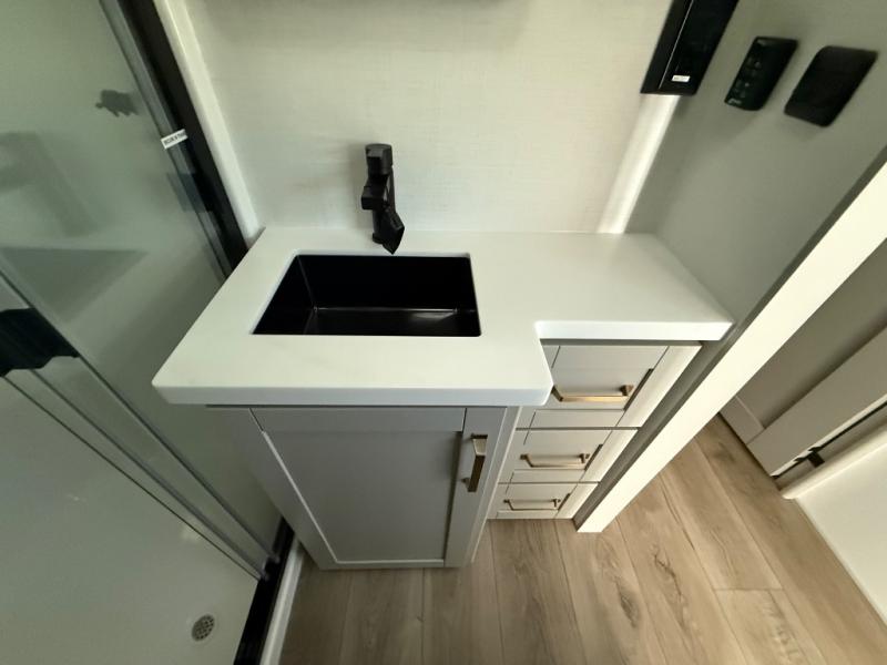 The Brinkley mid-profile Model Z fifth wheels bring you clean lines and an upscale look with plenty of style and exciting new features like the industry first brass plumbing connections. These units also feature an automotive grade front cap, plenty of exterior storage, dual exterior hot and cold showers, and wide stance leveling jacks for easy set up. Residential frameless windows provide a clean look and beautiful views, and ample electrical outlets and 6 USB/USB-C outlets allow all of your electronics and appliances to easily be used and charged.