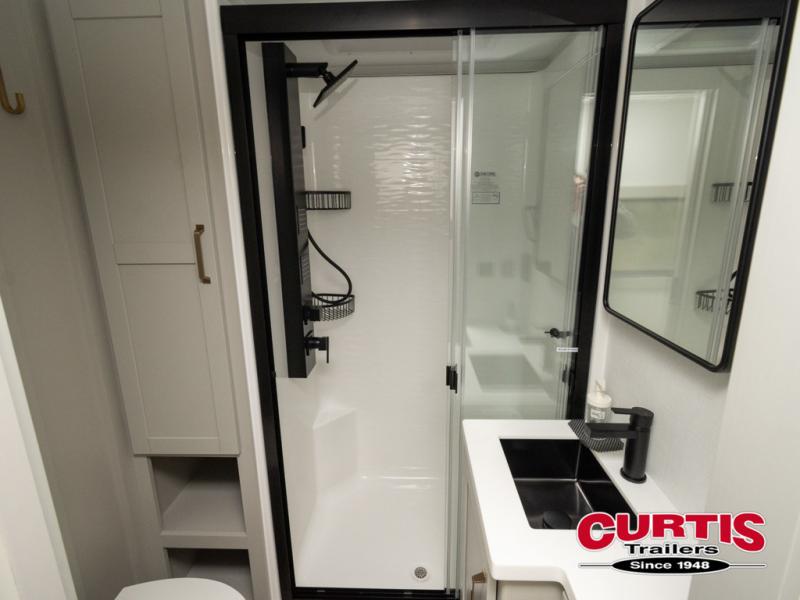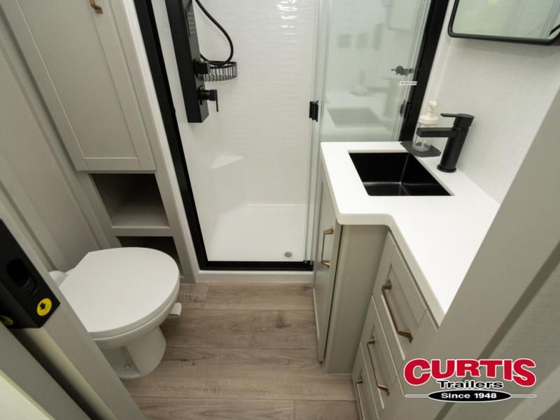 The Brinkley mid-profile Model Z fifth wheels bring you clean lines and an upscale look with plenty of style and exciting new features like the industry first brass plumbing connections. These units also feature an automotive grade front cap, plenty of exterior storage, dual exterior hot and cold showers, and wide stance leveling jacks for easy set up. Residential frameless windows provide a clean look and beautiful views, and ample electrical outlets and 6 USB/USB-C outlets allow all of your electronics and appliances to easily be used and charged.