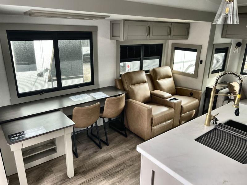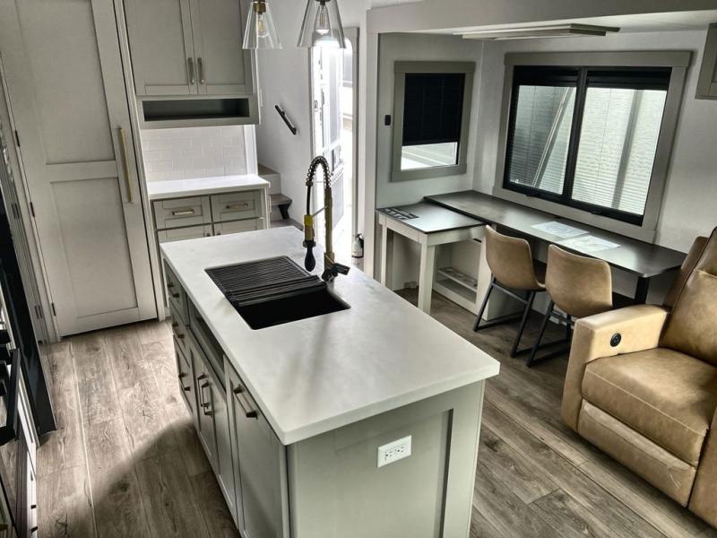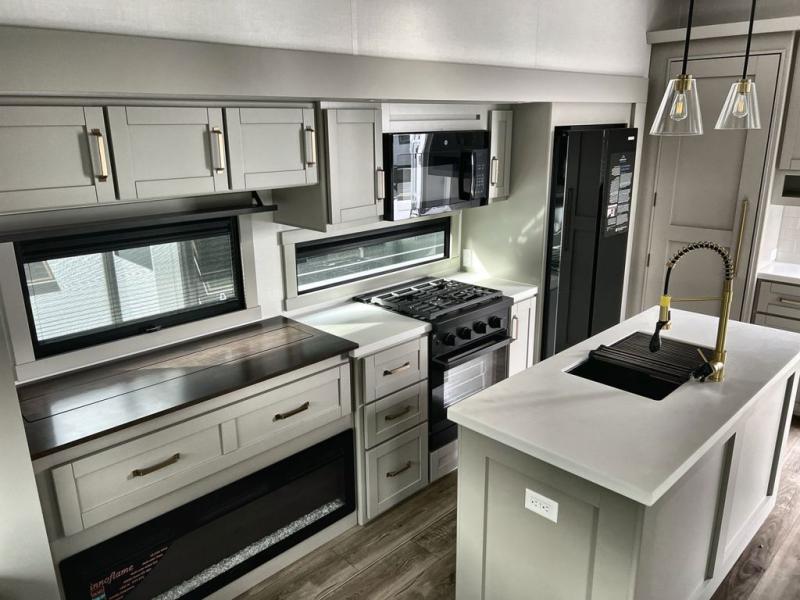 The Brinkley mid-profile Model Z fifth wheels bring you clean lines and an upscale look with plenty of style and exciting new features like the industry first brass plumbing connections. These units also feature an automotive grade front cap, plenty of exterior storage, dual exterior hot and cold showers, and wide stance leveling jacks for easy set up. Residential frameless windows provide a clean look and beautiful views, and ample electrical outlets and 6 USB/USB-C outlets allow all of your electronics and appliances to easily be used and charged.