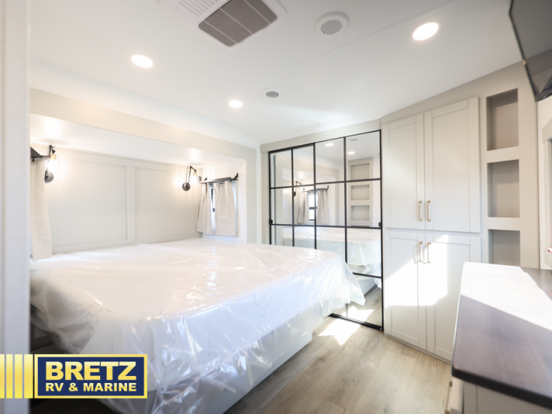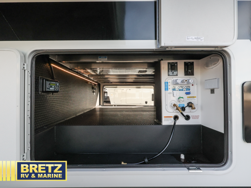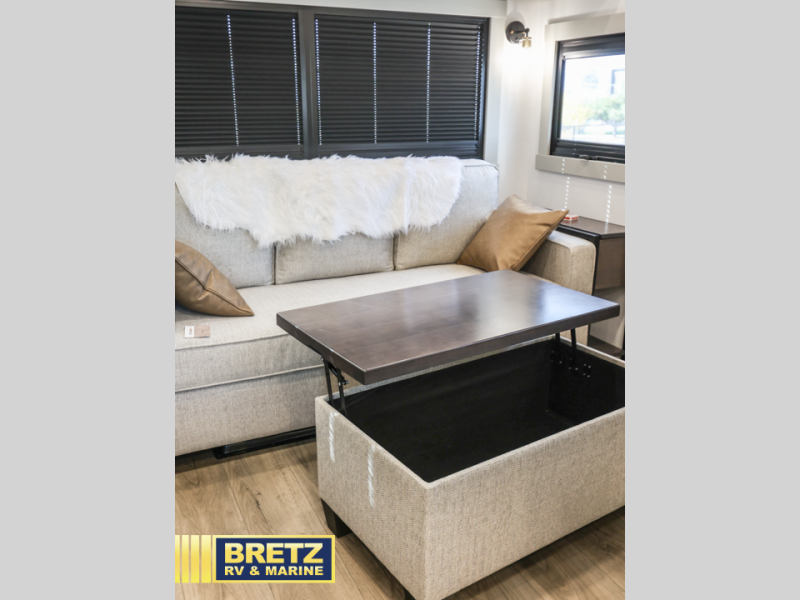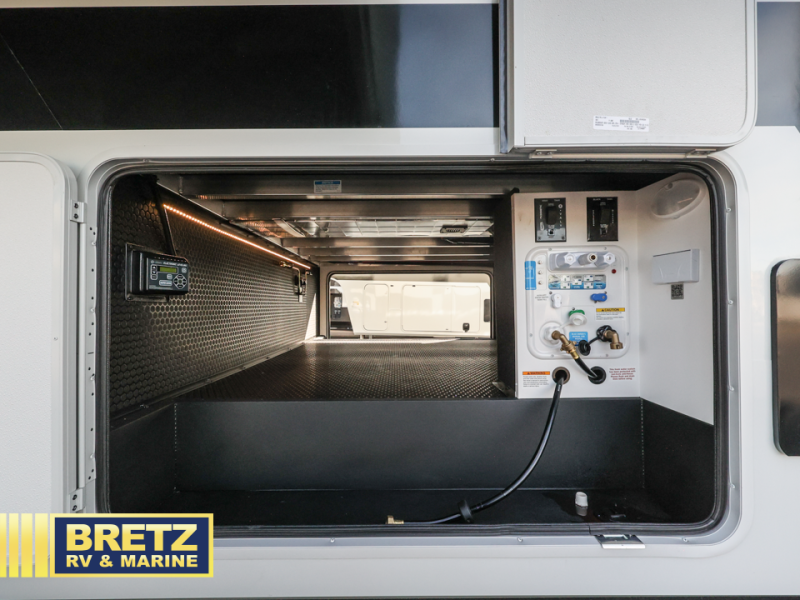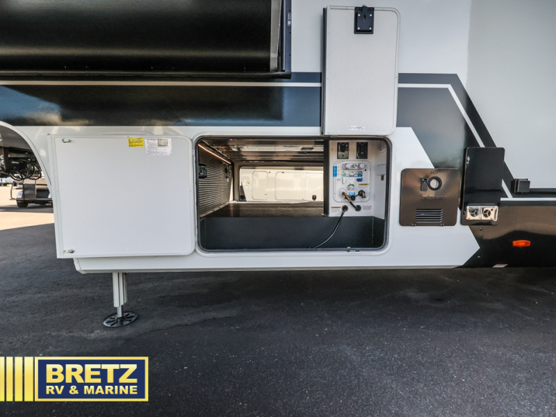 The Brinkley mid-profile Model Z fifth wheels bring you clean lines and an upscale look with plenty of style and exciting new features like the industry first brass plumbing connections. These units also feature an automotive grade front cap, plenty of exterior storage, dual exterior hot and cold showers, and wide stance leveling jacks for easy set up. Residential frameless windows provide a clean look and beautiful views, and ample electrical outlets and 6 USB/USB-C outlets allow all of your electronics and appliances to easily be used and charged.