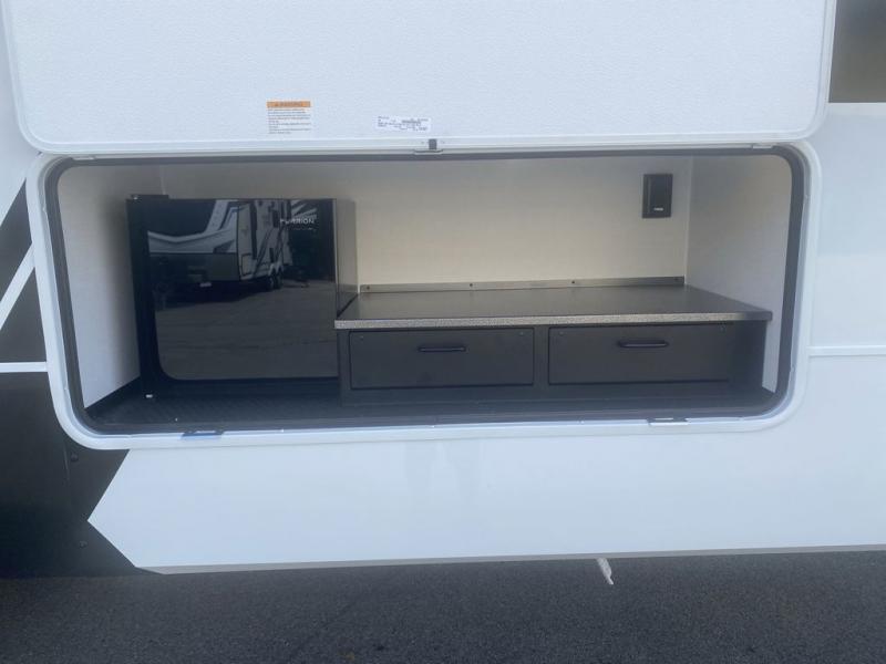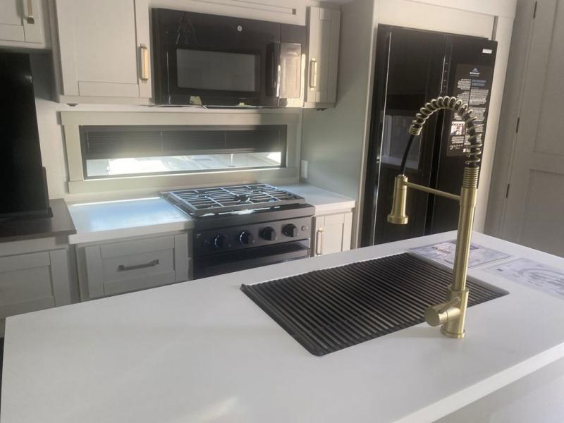 The Brinkley mid-profile Model Z fifth wheels bring you clean lines and an upscale look with plenty of style and exciting new features like the industry first brass plumbing connections. These units also feature an automotive grade front cap, plenty of exterior storage, dual exterior hot and cold showers, and wide stance leveling jacks for easy set up. Residential frameless windows provide a clean look and beautiful views, and ample electrical outlets and 6 USB/USB-C outlets allow all of your electronics and appliances to easily be used and charged.