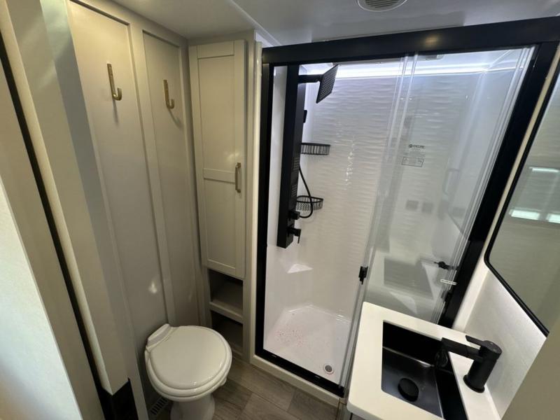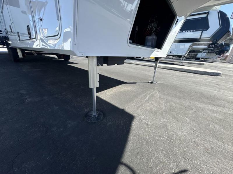 The Brinkley mid-profile Model Z fifth wheels bring you clean lines and an upscale look with plenty of style and exciting new features like the industry first brass plumbing connections. These units also feature an automotive grade front cap, plenty of exterior storage, dual exterior hot and cold showers, and wide stance leveling jacks for easy set up. Residential frameless windows provide a clean look and beautiful views, and ample electrical outlets and 6 USB/USB-C outlets allow all of your electronics and appliances to easily be used and charged.