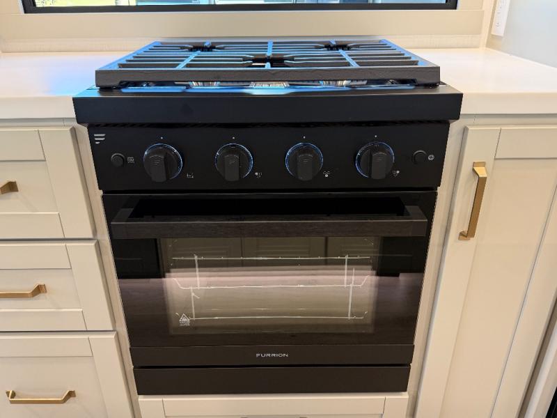 - Three-burner range with oven for home-style cooking