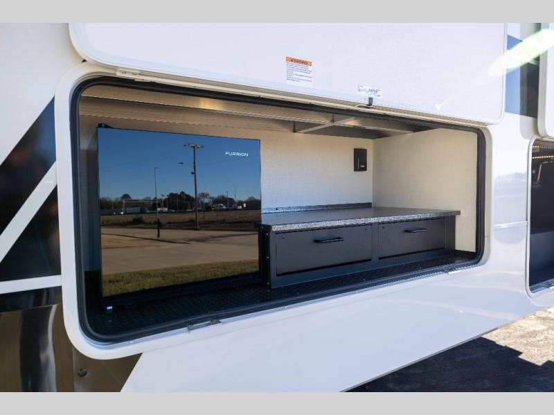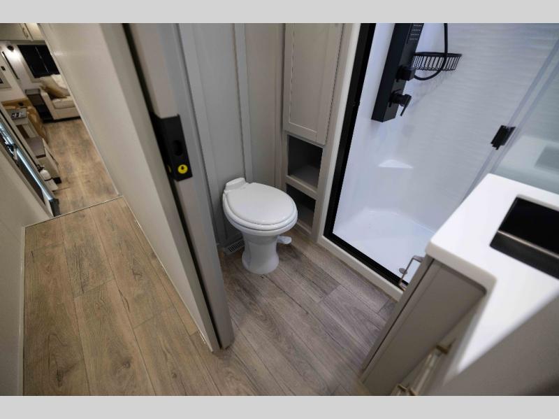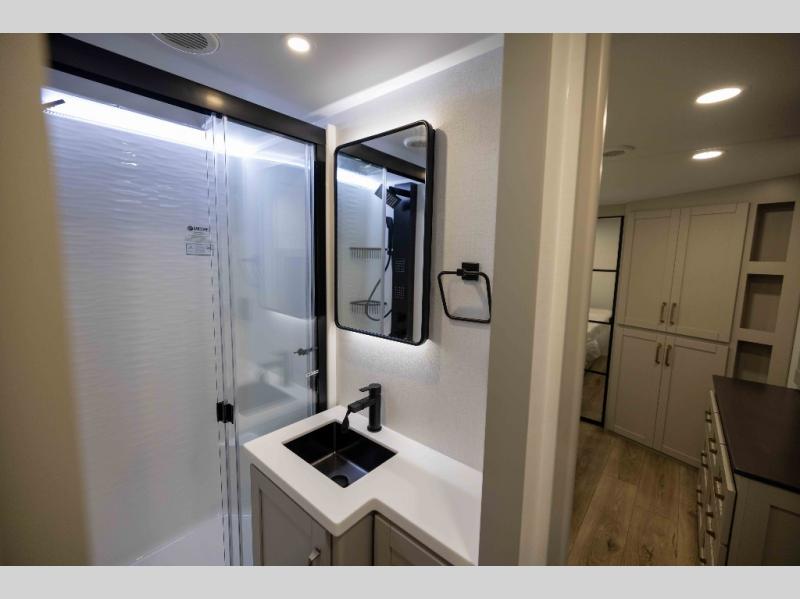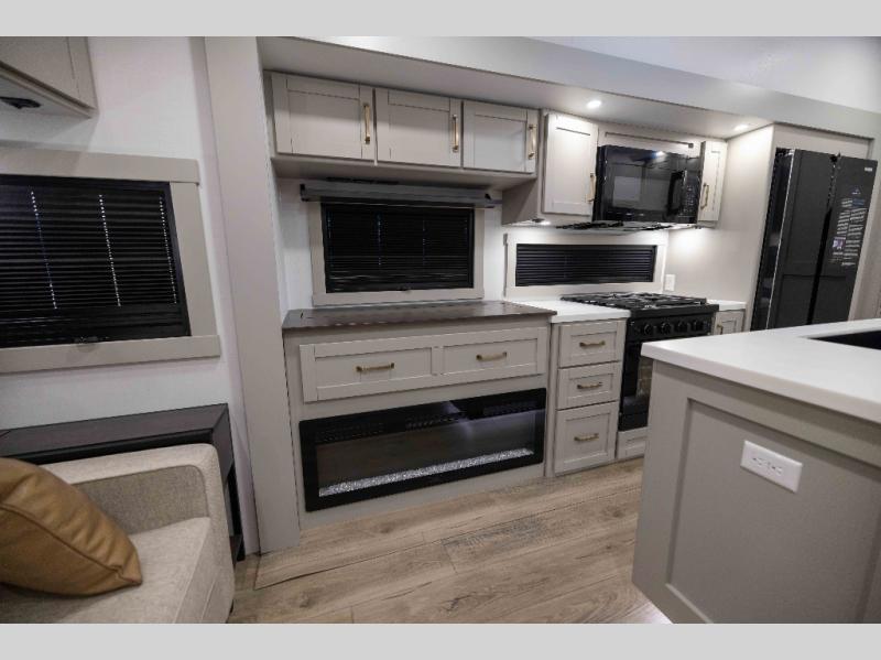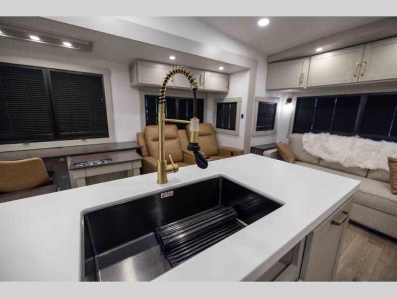 The Brinkley mid-profile Model Z fifth wheels bring you clean lines and an upscale look with plenty of style and exciting new features like the industry first brass plumbing connections. These units also feature an automotive grade front cap, plenty of exterior storage, dual exterior hot and cold showers, and wide stance leveling jacks for easy set up. Residential frameless windows provide a clean look and beautiful views, and ample electrical outlets and 6 USB/USB-C outlets allow all of your electronics and appliances to easily be used and charged.