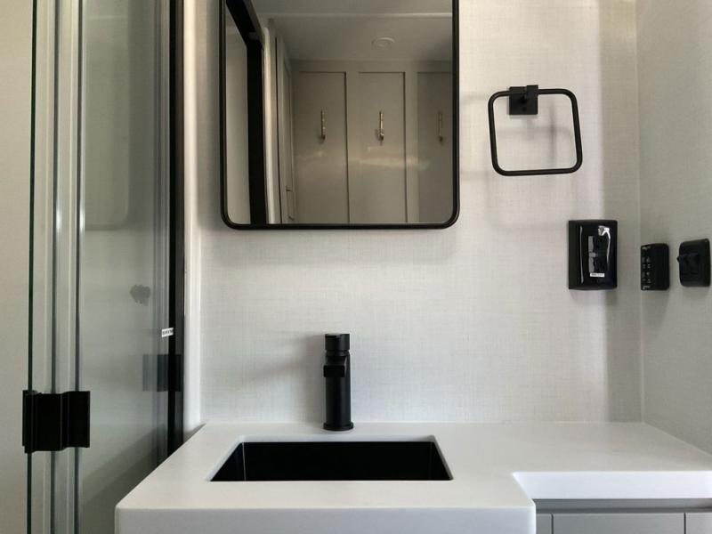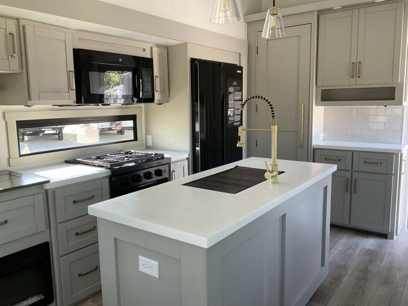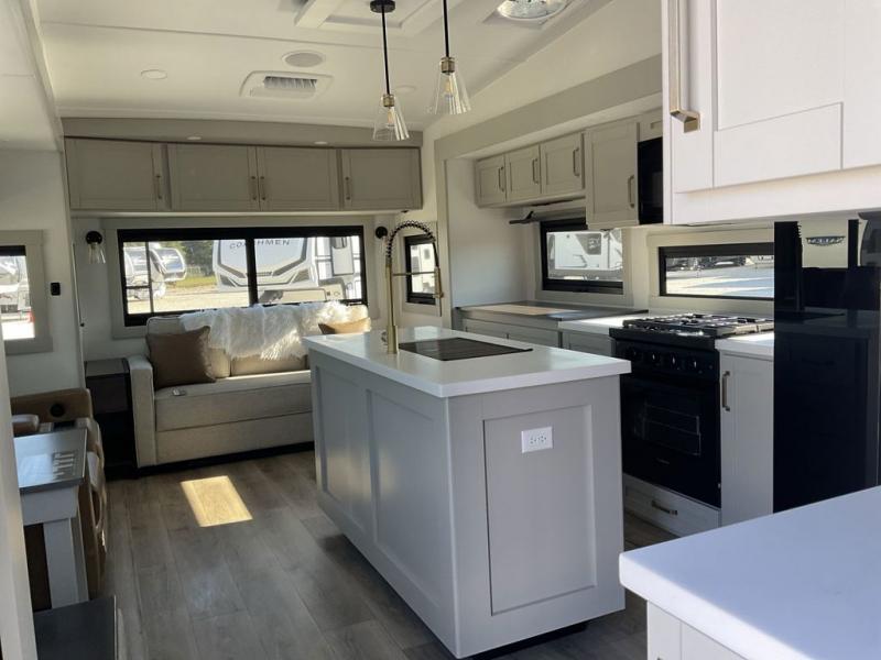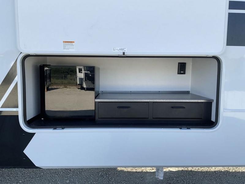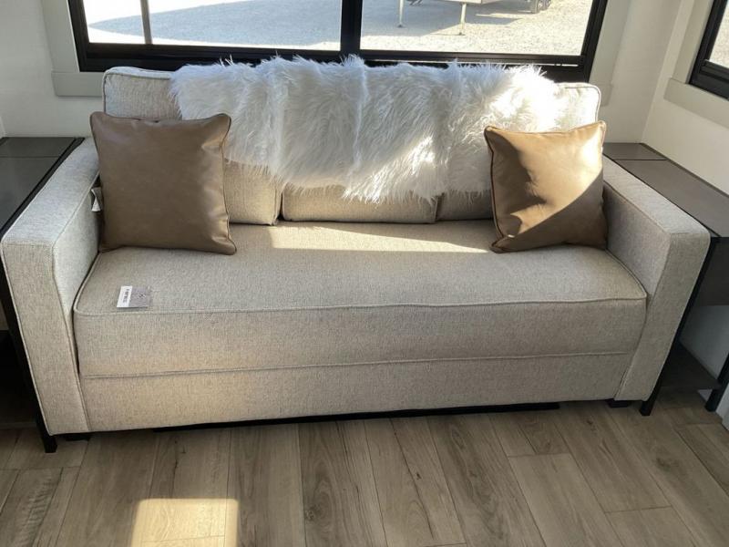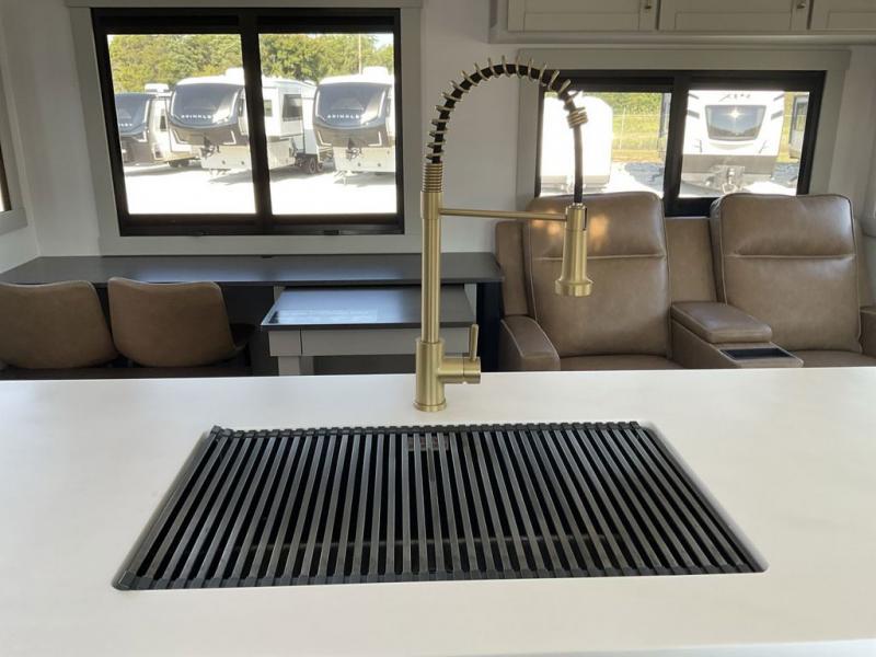 The Brinkley mid-profile Model Z fifth wheels bring you clean lines and an upscale look with plenty of style and exciting new features like the industry first brass plumbing connections. These units also feature an automotive grade front cap, plenty of exterior storage, dual exterior hot and cold showers, and wide stance leveling jacks for easy set up. Residential frameless windows provide a clean look and beautiful views, and ample electrical outlets and 6 USB/USB-C outlets allow all of your electronics and appliances to easily be used and charged.