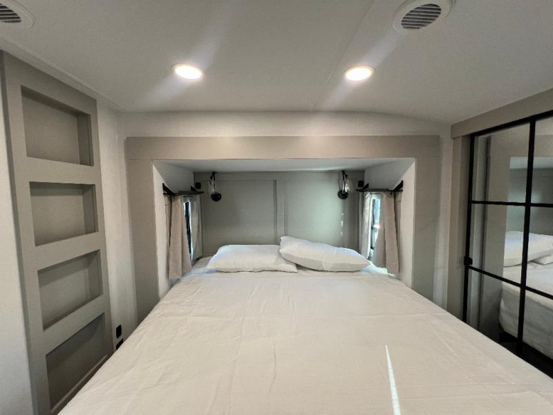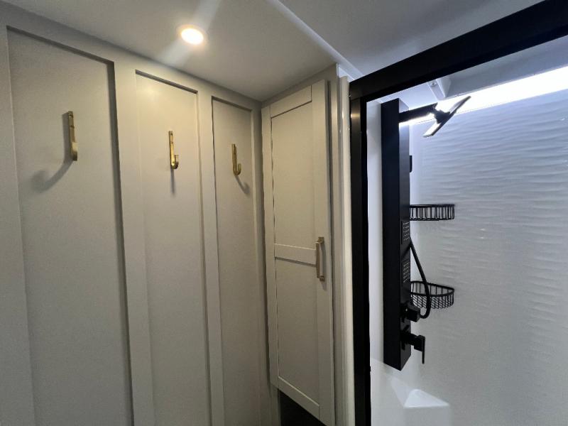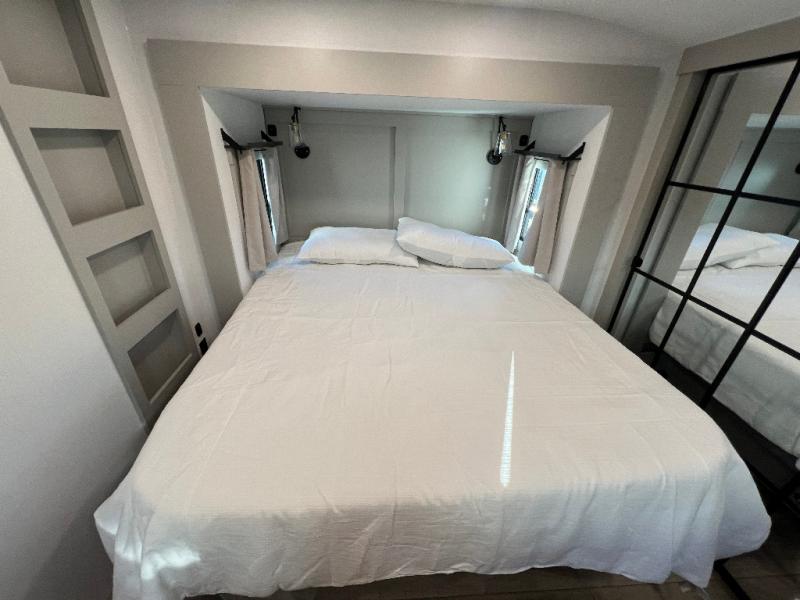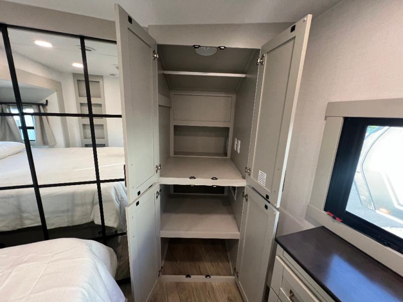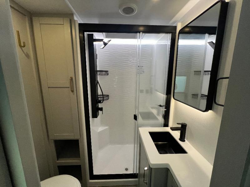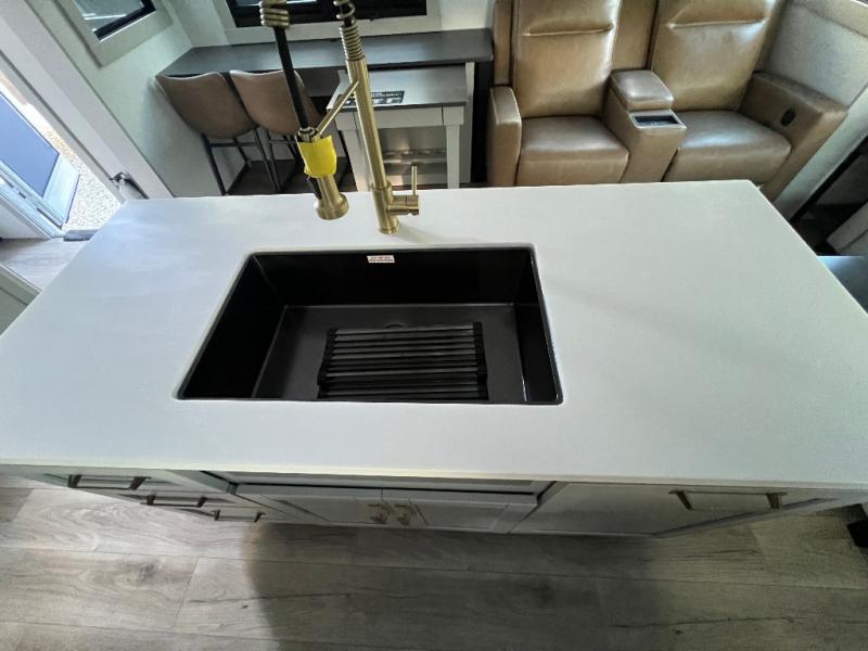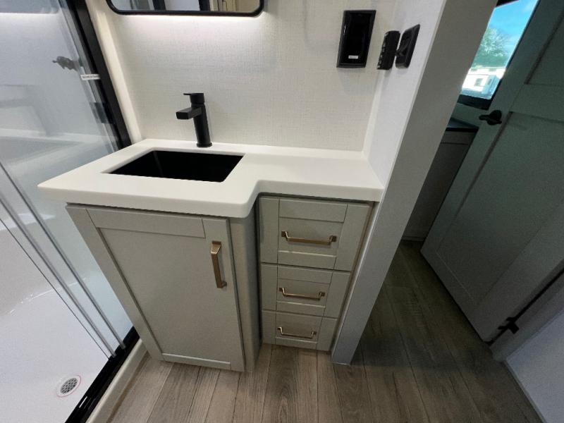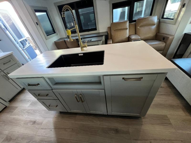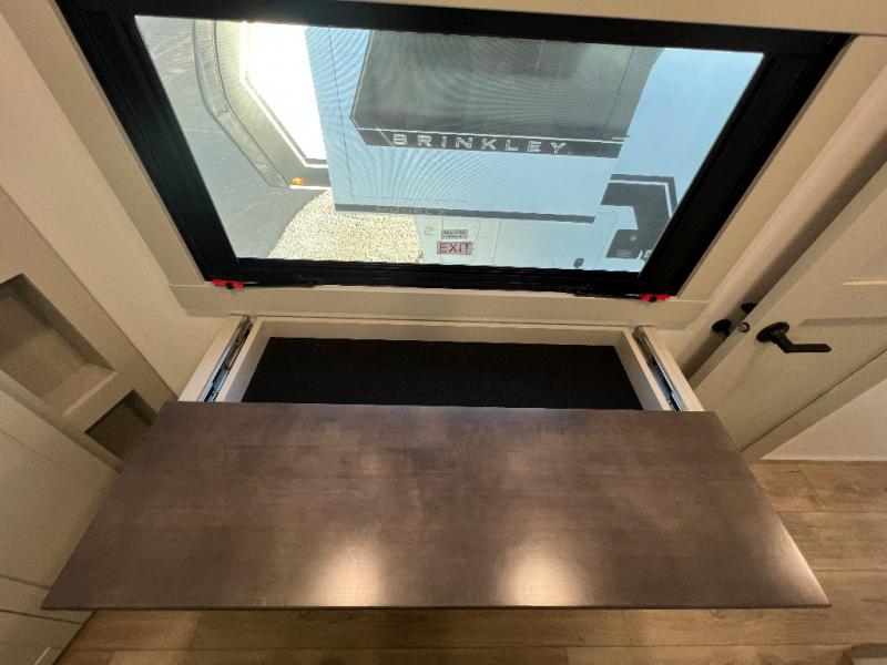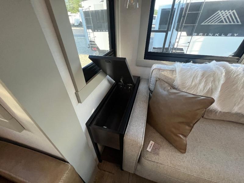 The Brinkley mid-profile Model Z fifth wheels bring you clean lines and an upscale look with plenty of style and exciting new features like the industry first brass plumbing connections. These units also feature an automotive grade front cap, plenty of exterior storage, dual exterior hot and cold showers, and wide stance leveling jacks for easy set up. Residential frameless windows provide a clean look and beautiful views, and ample electrical outlets and 6 USB/USB-C outlets allow all of your electronics and appliances to easily be used and charged.