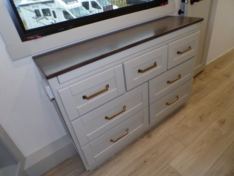The Brinkley mid-profile Model Z fifth wheels bring you clean lines and an upscale look with plenty of style and exciting new features like the industry first brass plumbing connections. These units also feature an automotive grade front cap, plenty of exterior storage, dual exterior hot and cold showers, and wide stance leveling jacks for easy set up. Residential frameless windows provide a clean look and beautiful views, and ample electrical outlets and 6 USB/USB-C outlets allow all of your electronics and appliances to easily be used and charged.
