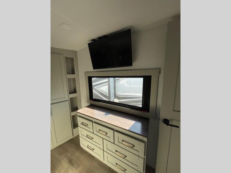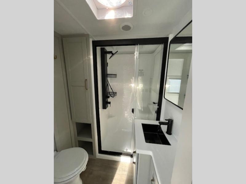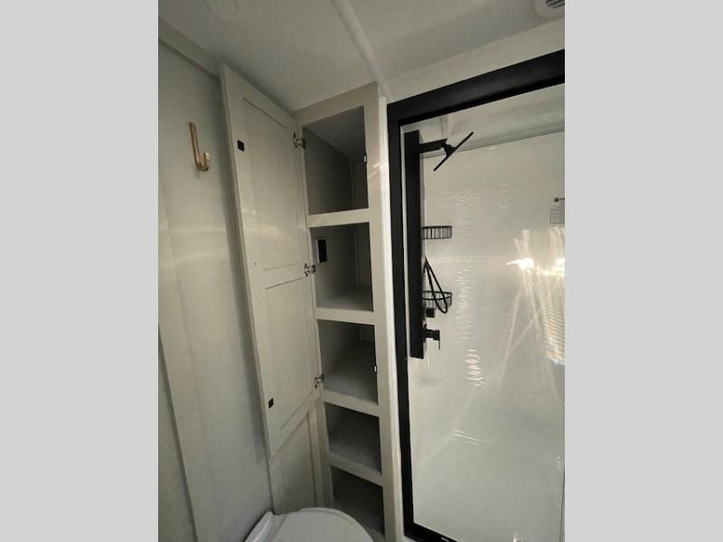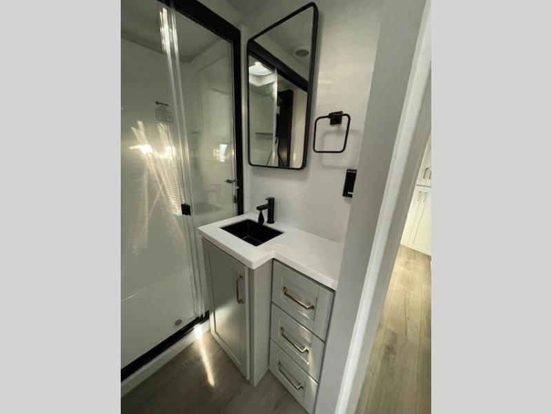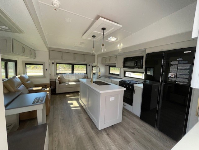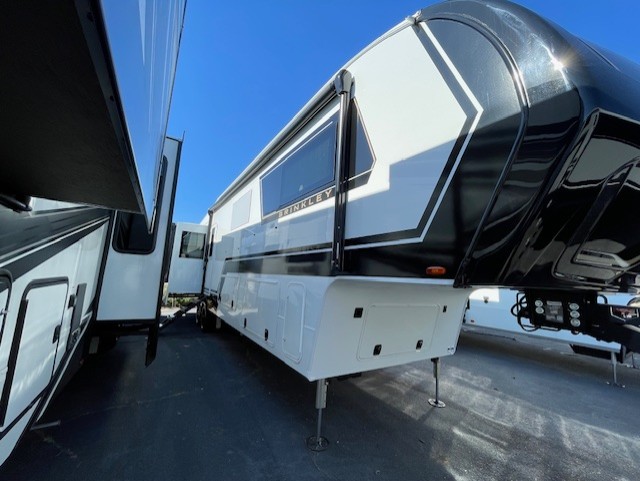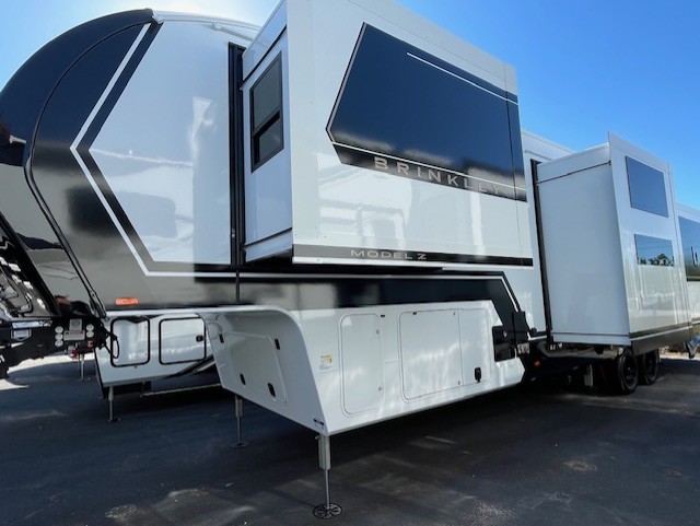 The Brinkley mid-profile Model Z fifth wheels bring you clean lines and an upscale look with plenty of style and exciting new features like the industry first brass plumbing connections. These units also feature an automotive grade front cap, plenty of exterior storage, dual exterior hot and cold showers, and wide stance leveling jacks for easy set up. Residential frameless windows provide a clean look and beautiful views, and ample electrical outlets and 6 USB/USB-C outlets allow all of your electronics and appliances to easily be used and charged.